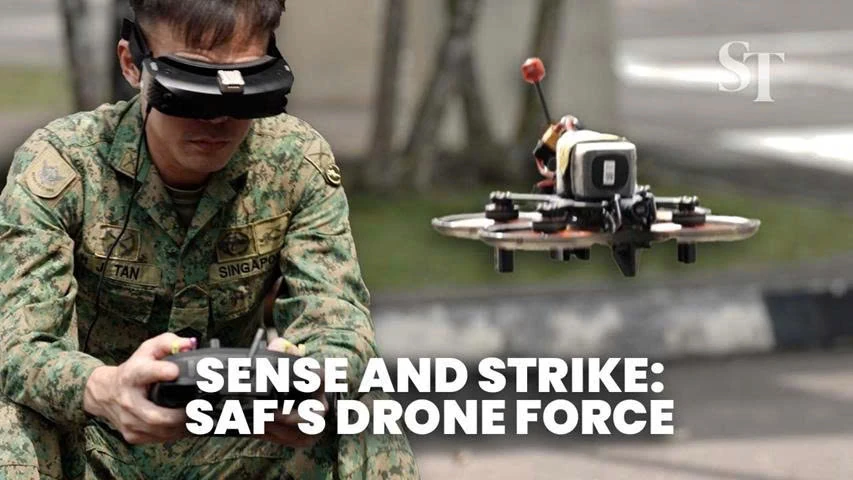 Một quân nhân Lực lượng Vũ trang Singapore (SAF) điều khiển máy bay không người lái bằng kính thực tế ảo. Ảnh: Straits Times.