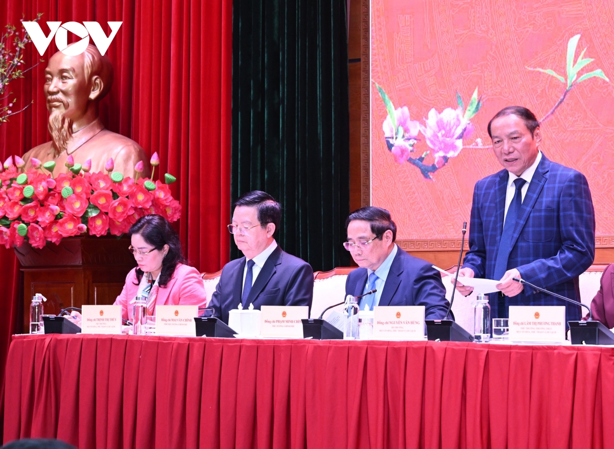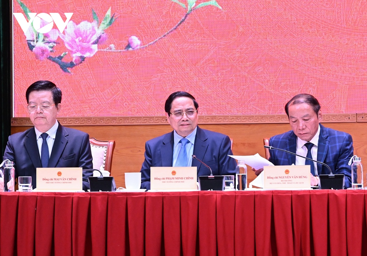 Tại buổi làm việc, Thủ tướng Phạm Minh Chính nhấn mạnh, yêu cầu phát triển của ngành Văn hóa Thể thao và Du lịch rất cao, nhất là phải triển khai Nghị quyết Đại hội đại biểu toàn quốc lần thứ XIV của Đảng liên quan đến lĩnh vực văn hóa; triển khai Nghị quyết 80 của Bộ Chính trị; Chương trình hành động thực hiện Nghị quyết 80; triển khai Chương trình mục tiêu quốc gia về văn hóa, xây dựng đề án phát triển công nghiệp văn hóa, giải trí...