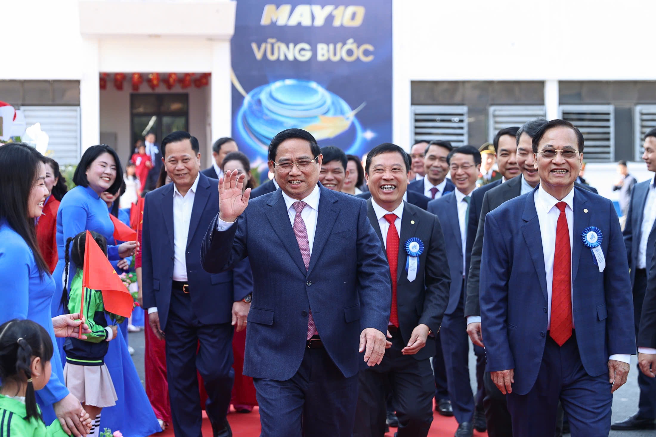 Thủ tướng Phạm Minh Chính đến dự lễ đón nhận Huân chương Lao động hạng nhất của Tổng công ty May 10, chiều 8-1. Ảnh: VIẾT CHUNG