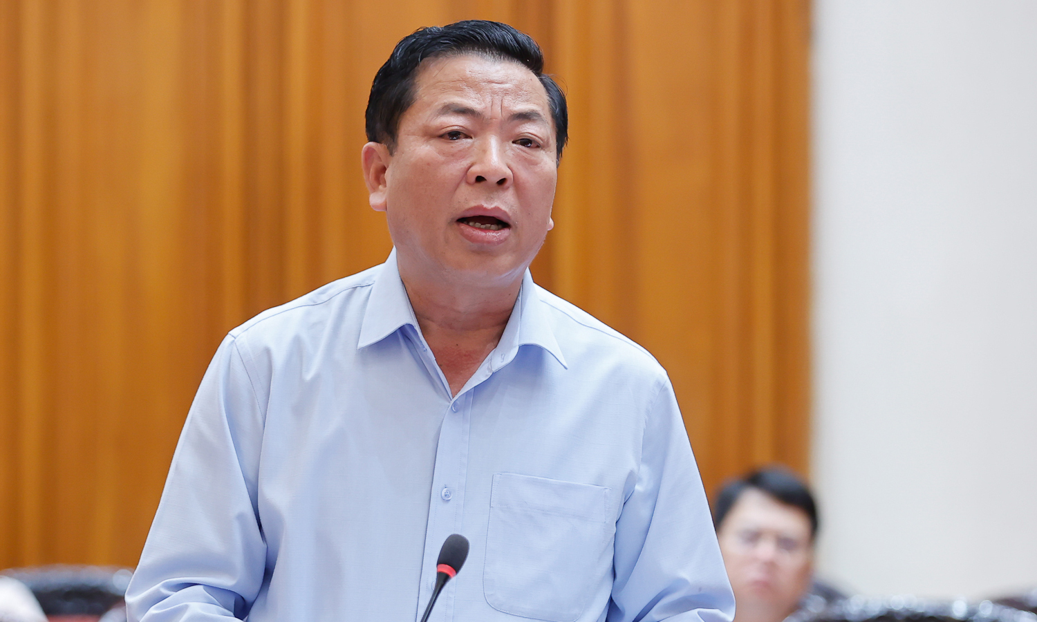 Bộ trưởng Bộ Xây dựng Trần Hồng Minh báo cáo tại cuộc họp. (Ảnh: VGP)