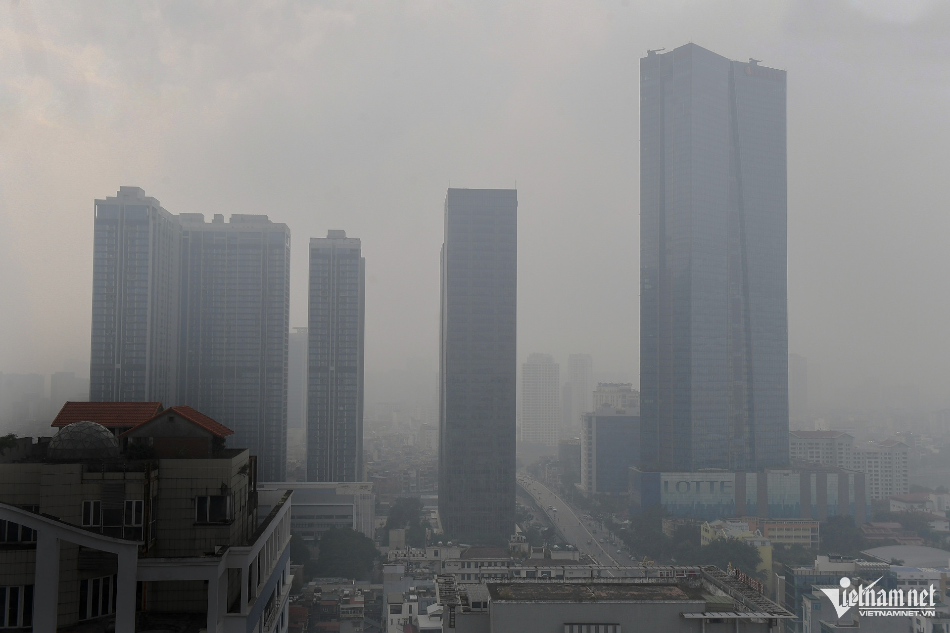 Tòa nhà "chọc trời" ở Thủ đô nhuốm màu xám vì không khí ô nhiễm. Ảnh: Thạch Thảo