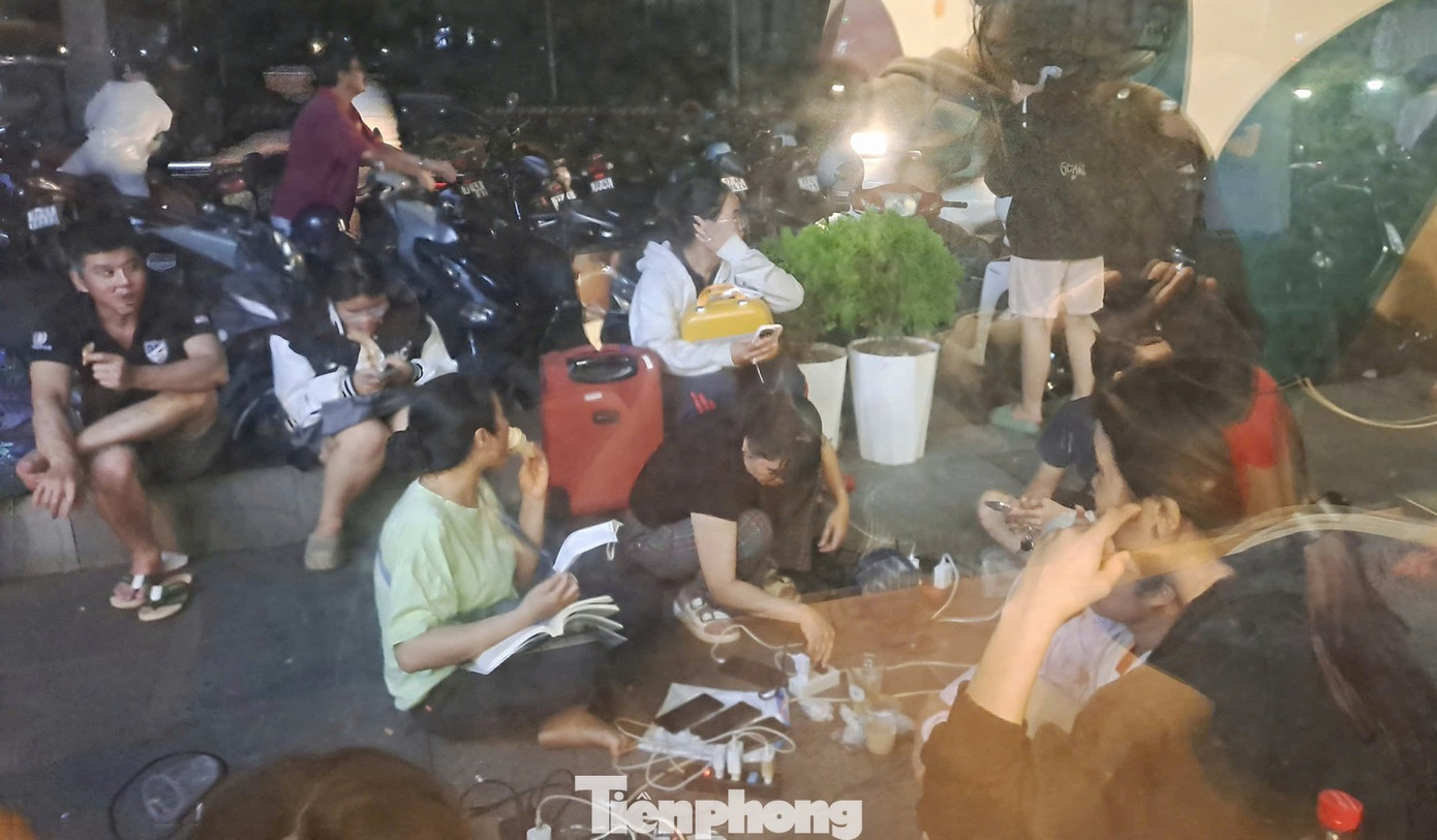 Mất điện, người dân tỉnh Gia Lai đổ về một trung tâm mua sắm để sạc pin điện thoại. Ảnh: Trương Định.
