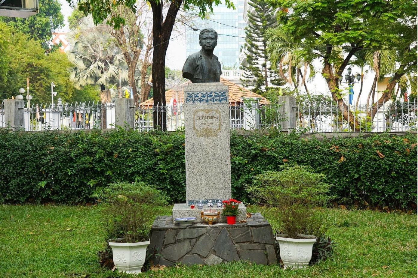 Tượng Anh hùng liệt sĩ Lý Tự Trọng được đặt trang trọng trong khuôn viên thư viện.