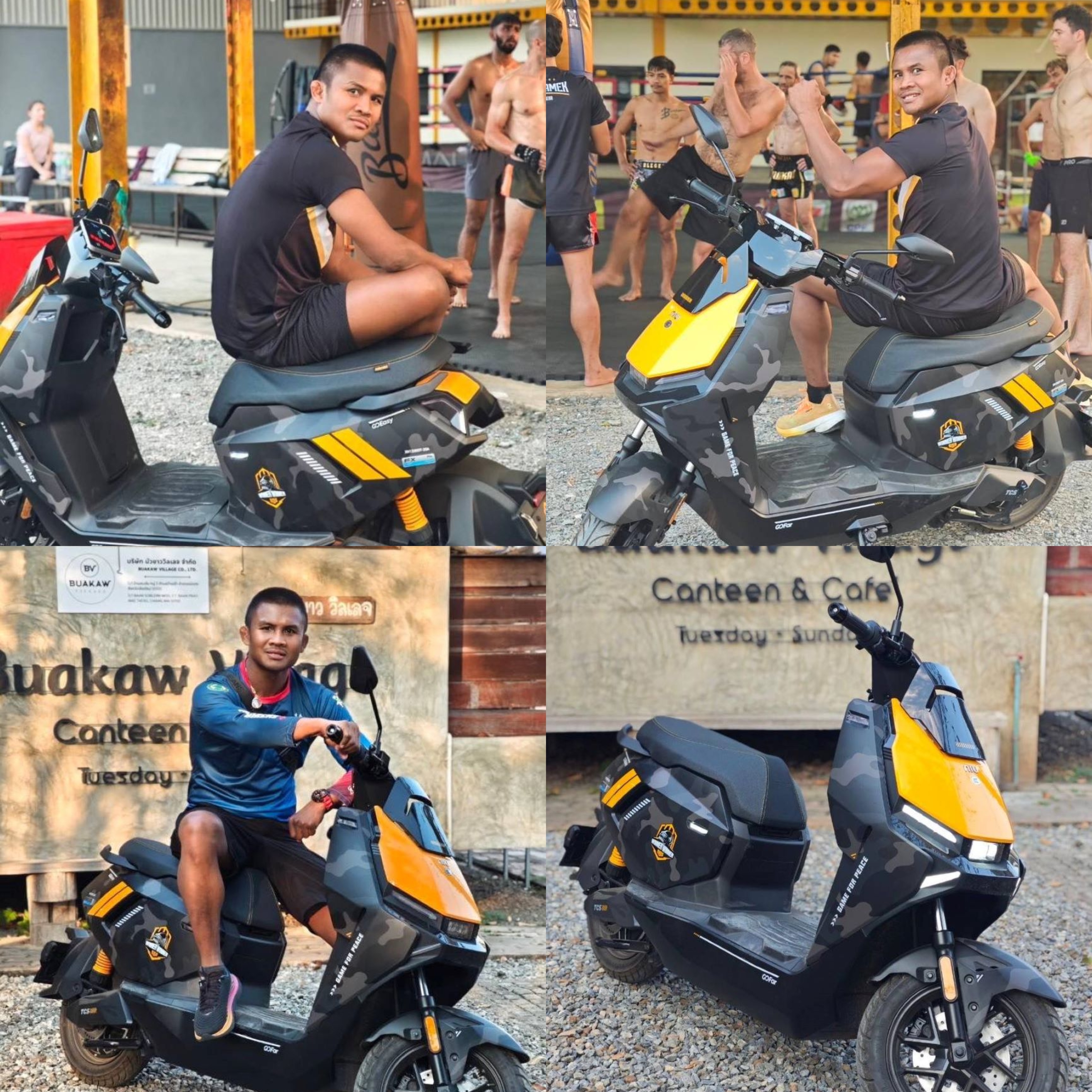 Năm 2025, Buakaw Banchamek chia sẻ ảnh chụp cùng chiếc xe máy điện NIU FX Play Pro yêu thích của mình. Xe được trang bị động cơ điện công suất 2.500 watt, tốc độ tối đa 60 km/h và tầm hoạt động tối đa 50 km cho mỗi lần sạc