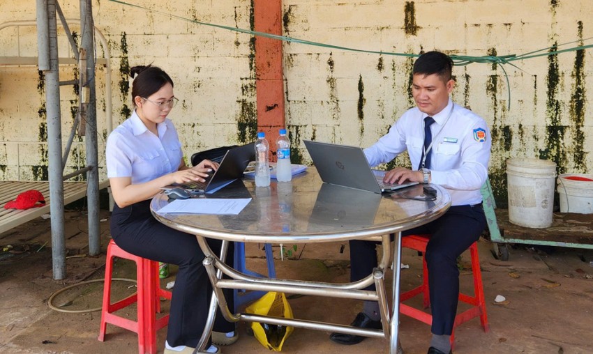 Thừa phát lại trong một buổi làm việc. Ảnh: SONG MAI
