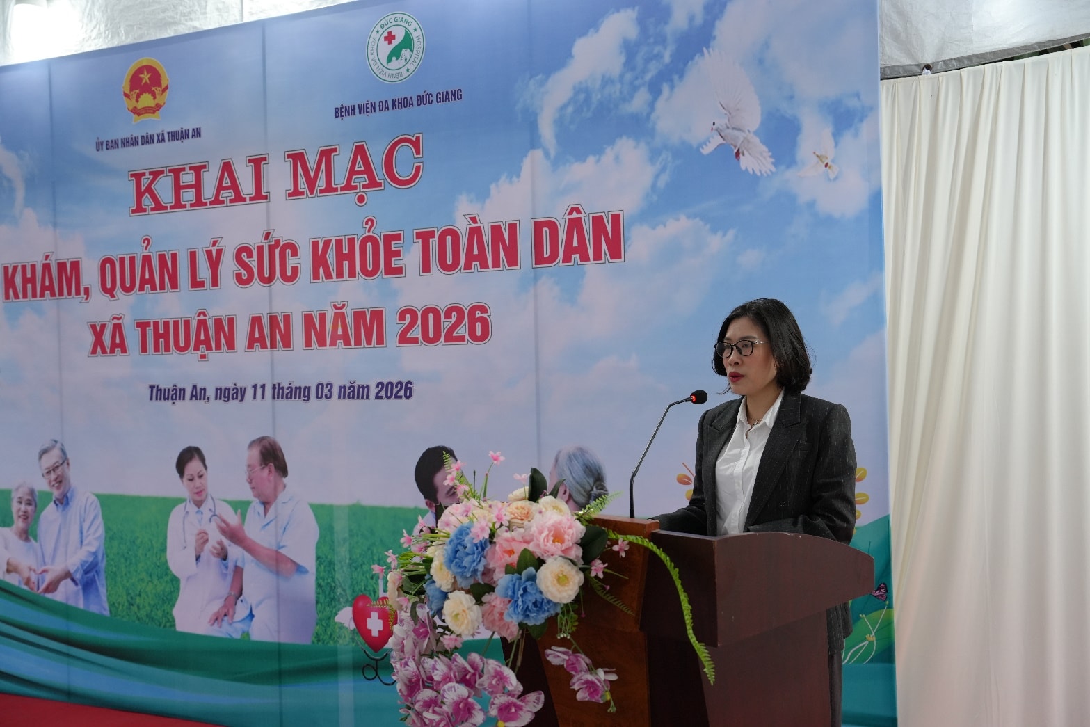 Tại lễ khai mạc, Phó Chủ tịch UBND xã Thuận An Nguyễn Thanh Hương cho biết, chương trình khám, quản lý sức khỏe toàn dân là hoạt động thiết thực nhằm nâng cao hiệu quả công tác chăm sóc, bảo vệ sức khỏe nhân dân. Thông qua chương trình, người dân được kiểm tra sức khỏe, phát hiện sớm bệnh tật và được tư vấn các biện pháp phòng, điều trị phù hợp.