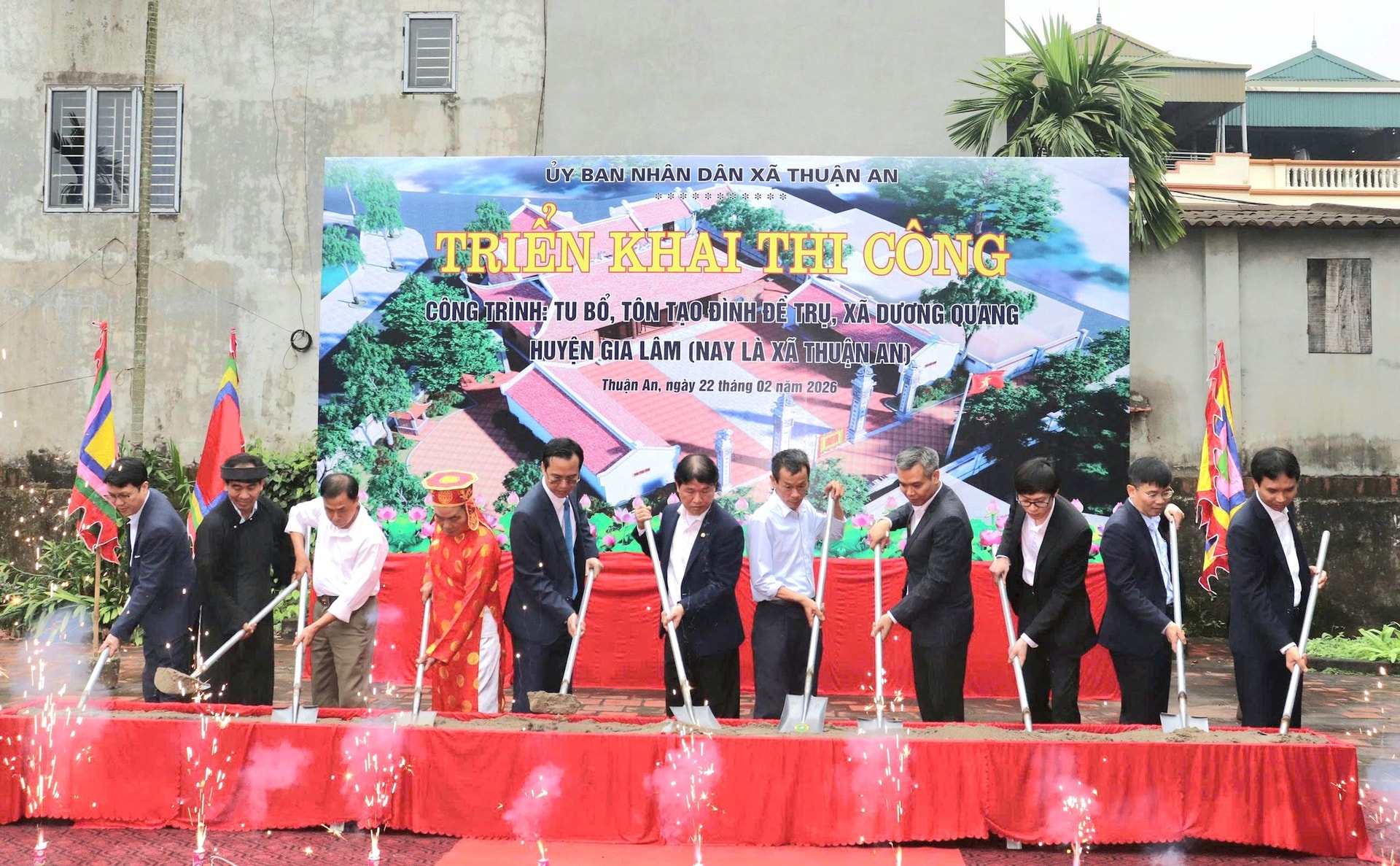 Cũng tại buổi lễ, xã Thuận An triển khai thi công các dự án tu bổ, tôn tạo di tích đình Dân, thôn Giao Tất B; đình Bằng, thôn Giao Tất A; đình Hàn Lạc; đình Đề Trụ. Tổng vốn đầu tư hơn 90 tỷ đồng. Đây là các công trình được xã triển khai nhằm tạo điều kiện cho sinh hoạt văn hóa của nhân dân các thôn, góp phần bảo tồn, phát huy giá trị di sản, văn hóa truyền thống của địa phương.