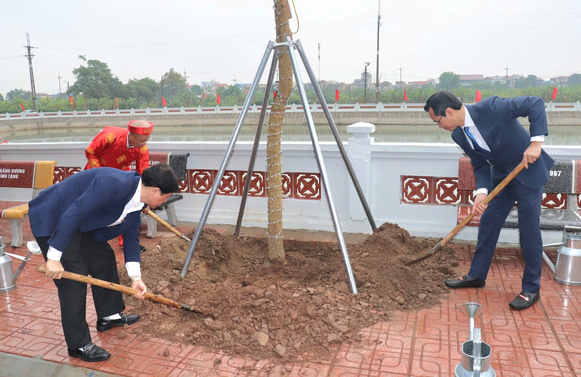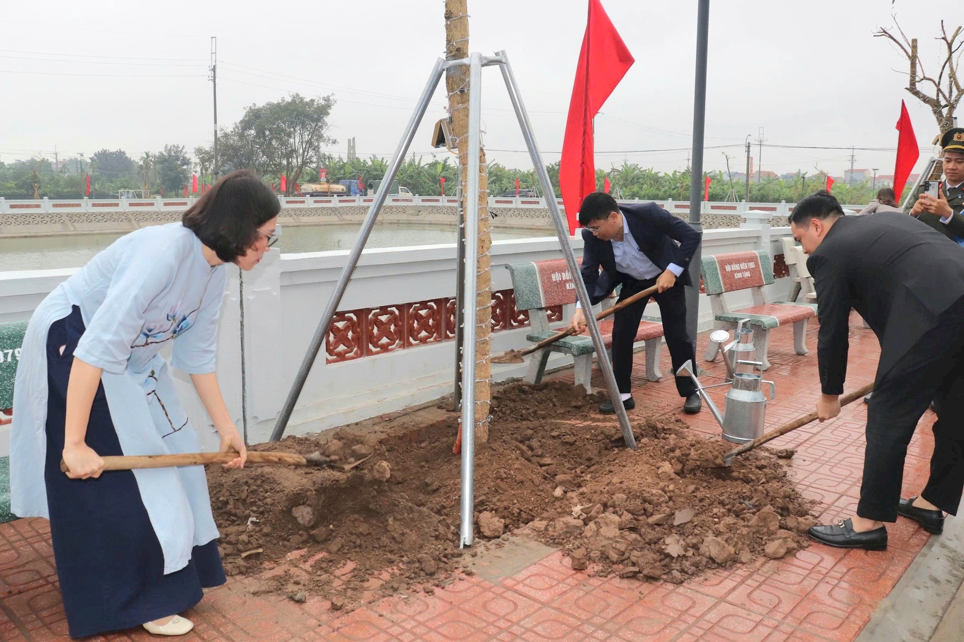 Các đại biểu trồng cây tại buổi lễ. Ảnh: Vân Thư