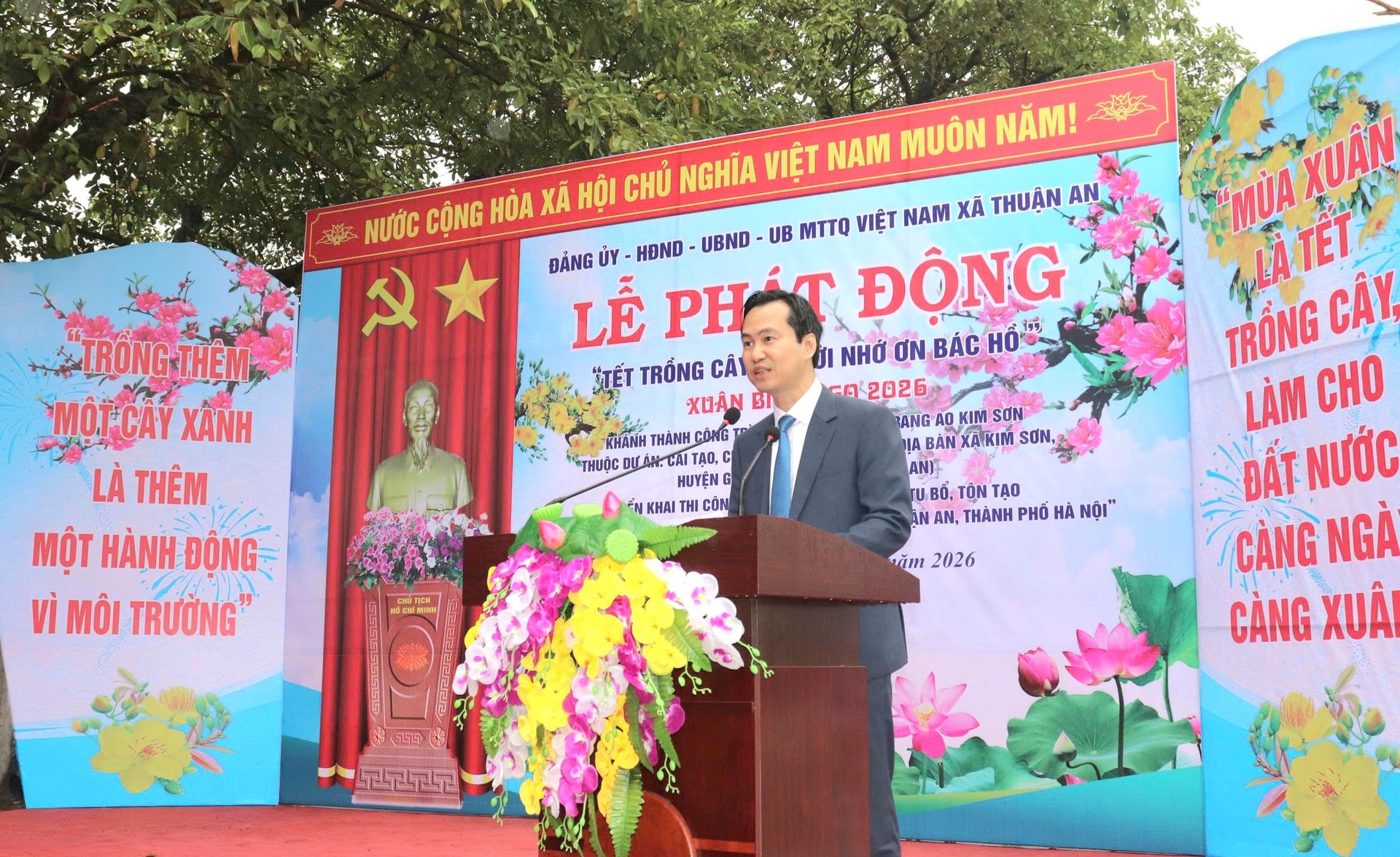 Phát biểu tại buổi lễ, Phó Bí thư Đảng ủy, Chủ tịch UBND xã Thuận An Nguyễn Tuấn Khanh khẳng định, hơn 60 năm qua, "Tết trồng cây" trở thành nét văn hóa truyền thống của dân tộc Việt Nam. Phát huy truyền thống tốt đẹp đó, mỗi cán bộ, đảng viên, nhân dân xã Thuận An luôn tích cực hưởng ứng phong trào bằng những việc làm thiết thực, giữ gìn cảnh quan đô thị, xây dựng nông thôn mới...