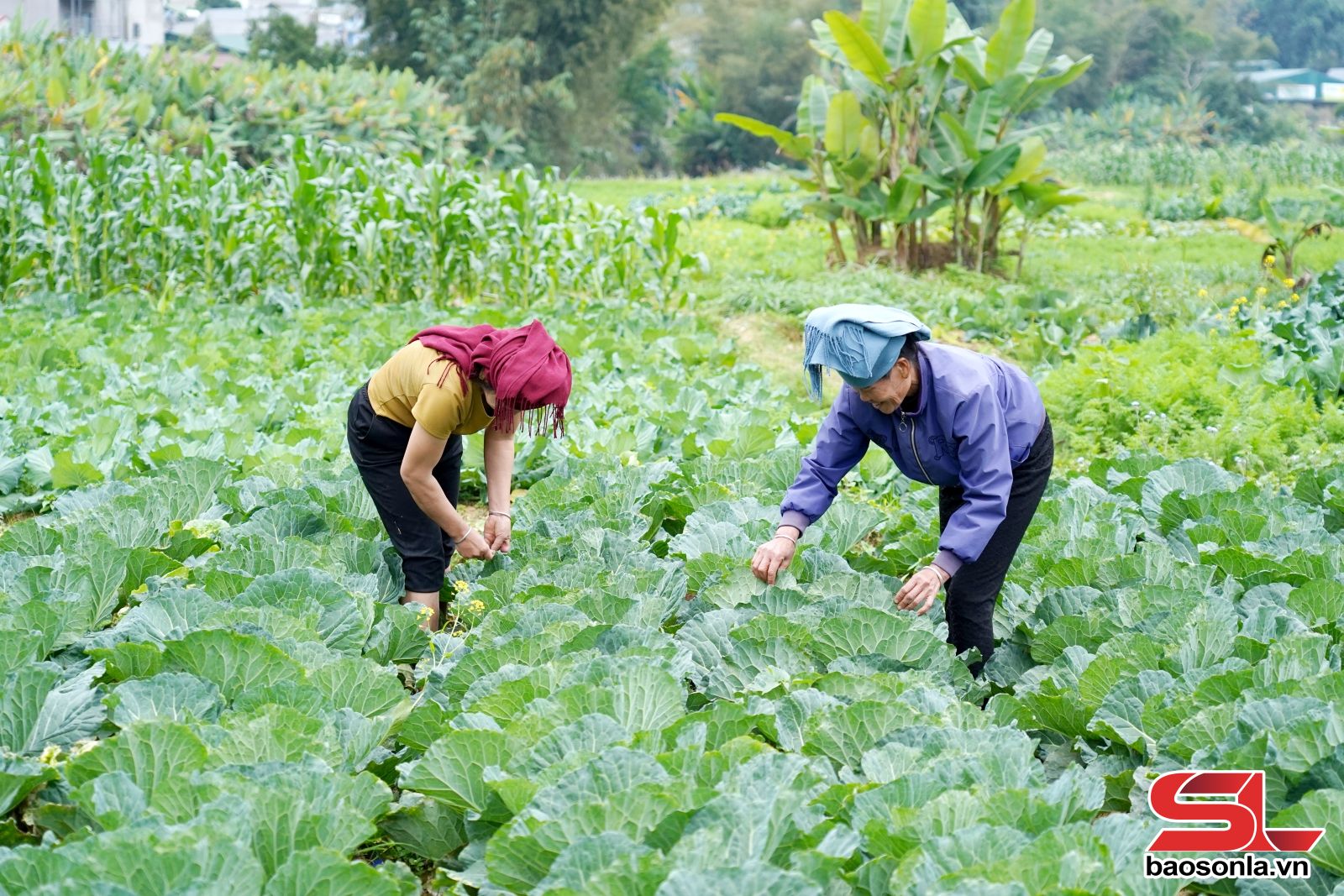 Nông dân xã Thuận Châu chăm sóc rau vụ đông.