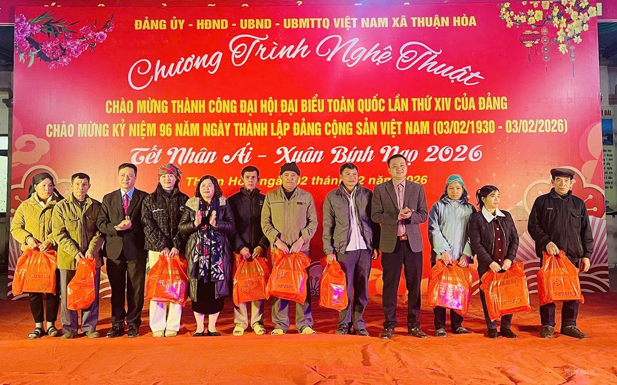 Trong khuôn khổ chương trình, UBND xã Thuận Hòa phát động quyên góp, ủng hộ các hộ gia đình có hoàn cảnh đặc biệt khó khăn trên địa bàn. Phát huy tinh thần “lá lành đùm lá rách”, ngay tại đêm văn nghệ, Ban Tổ chức đã vận động được gần 600 triệu đồng. Trong đó, Công ty Thủy điện Sông Miện 5 – 5A ủng hộ hơn 400 triệu đồng; số tiền còn lại do cán bộ, công chức, viên chức và nhân dân trong xã đóng góp gần 200 triệu đồng. Nguồn kinh phí sẽ được xã sử dụng để hỗ trợ các đối tượng yếu thế, góp phần chăm lo an sinh xã hội, giúp các gia đình khó khăn trên địa bàn xã đón Tết Nguyên đán Bính Ngọ 2026 vui tươi, đầm ấm.