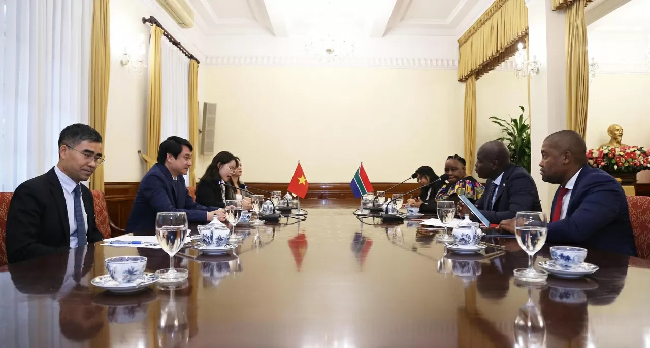 Tại cuộc tiếp, Thứ trưởng Ngoại giao Lê Anh Tuấn bày tỏ vui mừng được đón Bộ trưởng Ngoại giao và Hợp tác quốc tế Nam Phi lần đầu tới thăm Việt Nam.