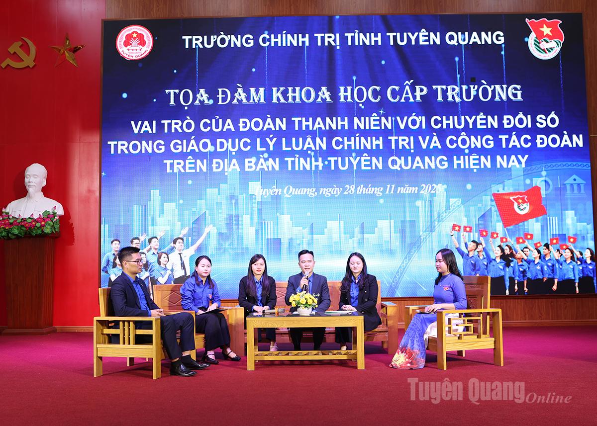 Tại tọa đàm, đại biểu đã thảo luận, trao đổi về các nội dung: Ứng dụng công nghệ số để tăng tính tương tác trong giảng dạy lý luận chính trị góp phần đổi mới phương pháp dạy học hiện nay; phát huy vai trò của sinh viên trong thúc đẩy chuyển đổi số trong học tập và hoạt động, phong trào Đoàn - Hội. Đại biểu cũng thảo luận về ứng dụng công nghệ số và truyền thông đa phương tiện đổi mới phương thức giáo dục lý tưởng cách mạng, đạo đức, lối sống cho đoàn viên, thanh niên; tuổi trẻ Trường Cao đẳng Nghề Kỹ thuật - Công nghệ Tuyên Quang tiên phong trong chuyển đổi số gắn với học tập và hoạt động, phong trào Đoàn; kỹ năng sử dụng mạng xã hội và các nền tảng truyền thông số trong giáo dục lý luận chính trị; phát huy vai trò của cán bộ Đoàn trong giáo dục lý luận chính trị và chuyển đổi số hiện nay…