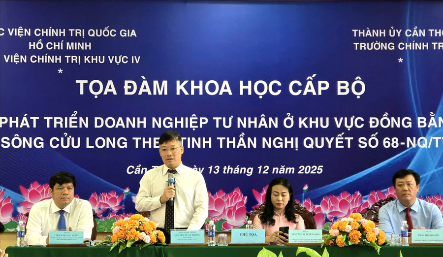 Sáng 13/12, Học viện Chính trị khu vực IV (Học viện Chính trị Quốc gia Hồ Chí Minh) phối hợp Trường Chính trị TP Cần Thơ tổ chức Tọa đàm khoa học cấp Bộ với chủ đề “Phát triển doanh nghiệp tư nhân ở khu vực ĐBSCL theo tinh thần Nghị quyết số 68-NQ/TW”.