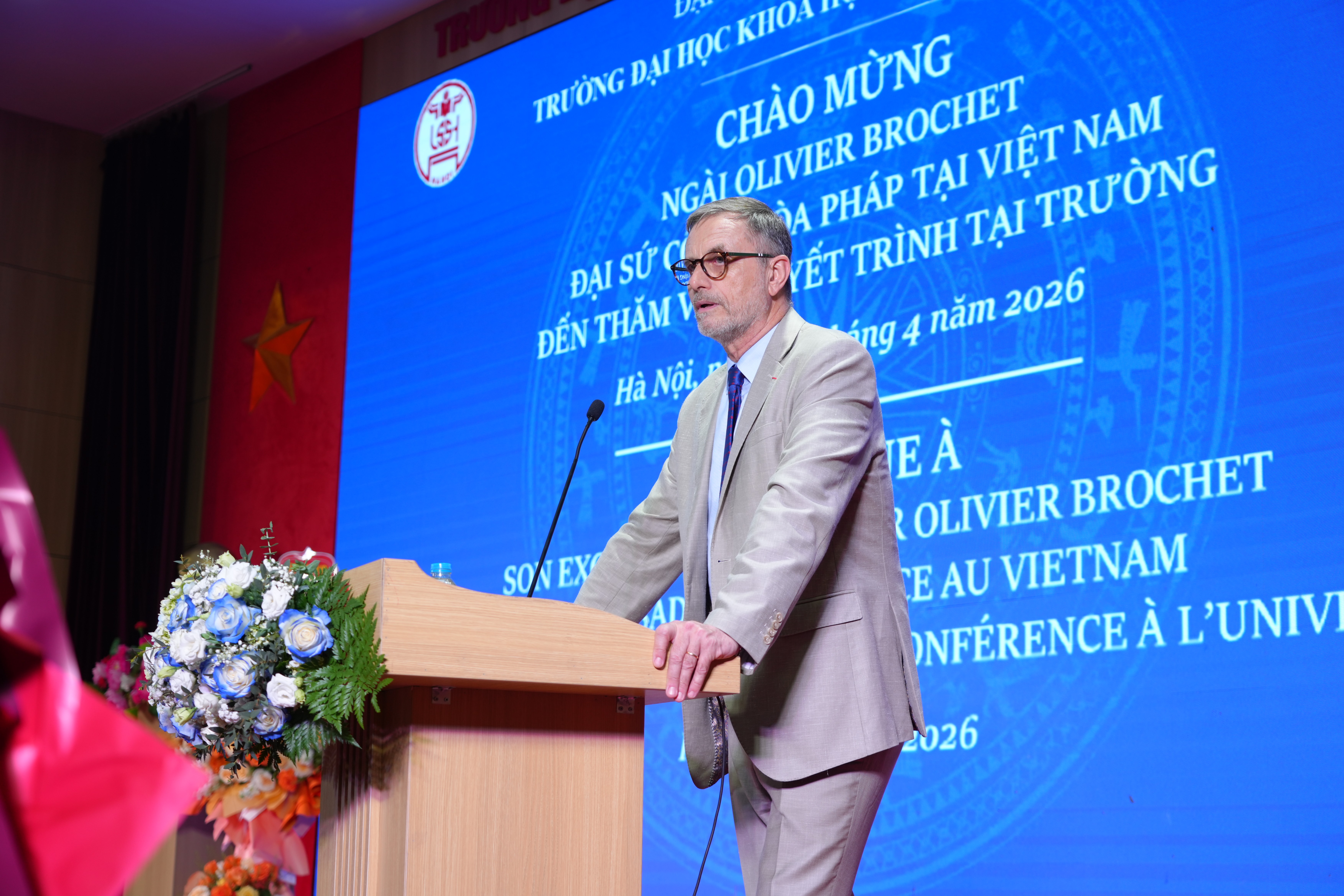 Nhà trường vinh dự đón Ngài Olivier Brochet - Đại sứ đặc mệnh toàn quyền Cộng hòa Pháp tại Việt Nam tới tham dự và được lắng nghe Bài thuyết trình học thuật của ngài Đại sứ tại Hội trường Văn khoa. Với hơn 500 giảng viên, cán bộ, sinh viên, học viên của nhà trường, đây là những thông tin giàu ý nghĩa về học thuật và ngoại giao - những sợi dây liên kết bền chặt giữa hai dân tộc Việt - Pháp, góp phần thắt chặt thêm mối quan hệ song phương giữa hai quốc gia.