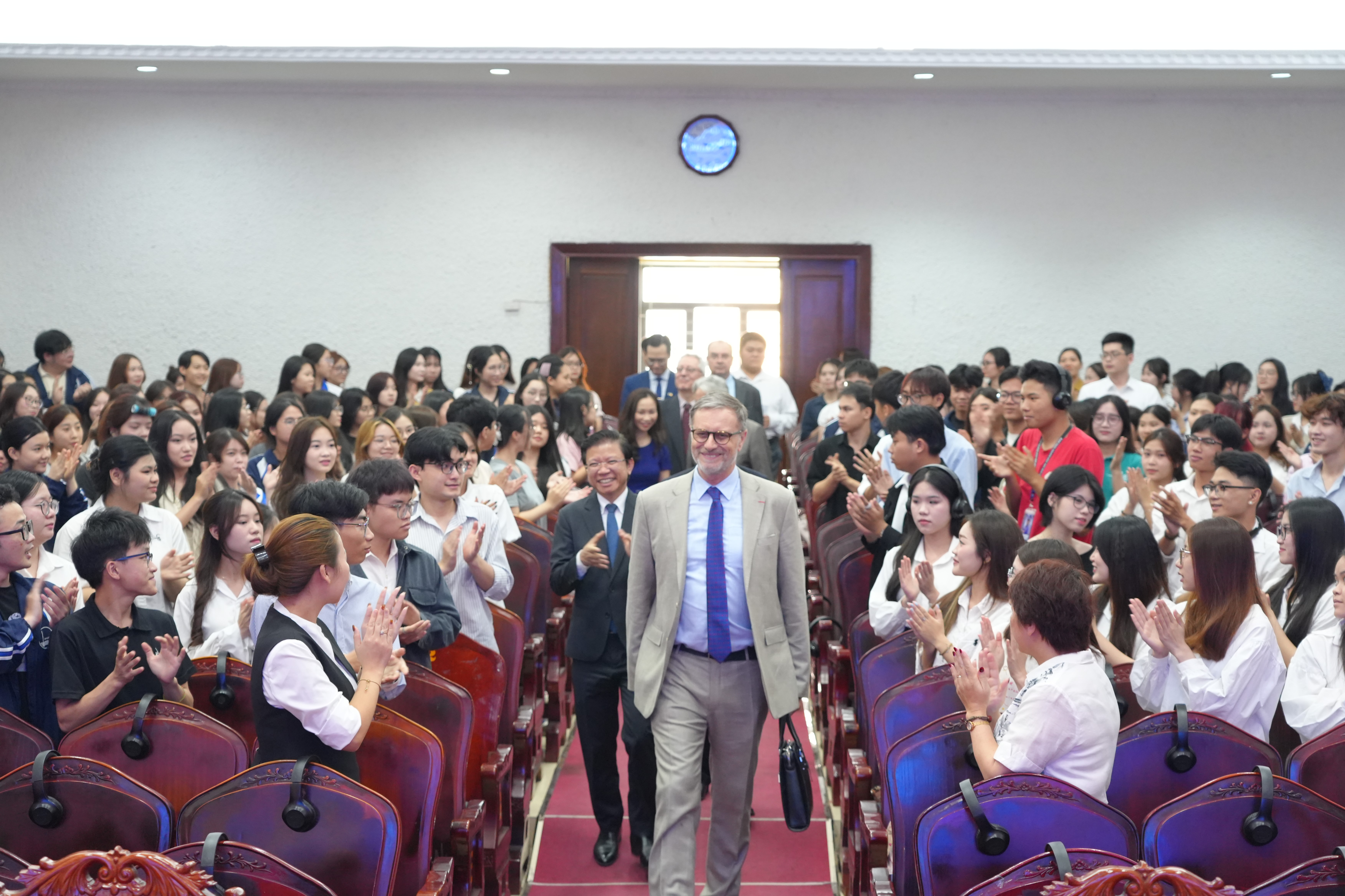 Trong bài thuyết trình tại trường, Đại sứ Olivier Brochet nhấn mạnh quan hệ Việt Nam - Pháp là “mối quan hệ đặc biệt trên thế giới”, đồng thời khẳng định thế hệ trẻ hai nước sẽ là lực lượng “xây dựng cây cầu hữu nghị, trí tuệ giữa hai quốc gia”. Những thông điệp ấy khiến diễn đàn học thuật tại Nhân văn không dừng ở phạm vi một buổi nói chuyện, mà trở thành sự cộng hưởng với một khuôn khổ hợp tác song phương đang được làm sâu sắc hơn.