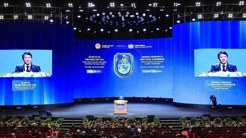 Bộ trưởng Công an, Đại tướng Lương Tam Quang phát biểu tại phiên bế mạc Lễ mở ký và Hội nghị cấp cao Công ước của Liên hợp quốc về chống tội phạm mạng 2025 (Công ước Hà Nội). Ảnh: BÁO NHÂN DÂN