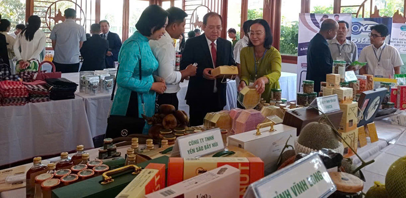 Bên lề Hội nghị, Ban Tổ chức bố trí khu trưng bày sản phẩm tiêu biểu của các địa phương trong và ngoài khu vực phía Nam, cùng các sản phẩm đặc trưng của doanh nghiệp Campuchia, giới thiệu tiềm năng, thế mạnh vùng, ngành, đồng thời tạo cơ hội kết nối trực tiếp giữa các doanh nghiệp hai nước.