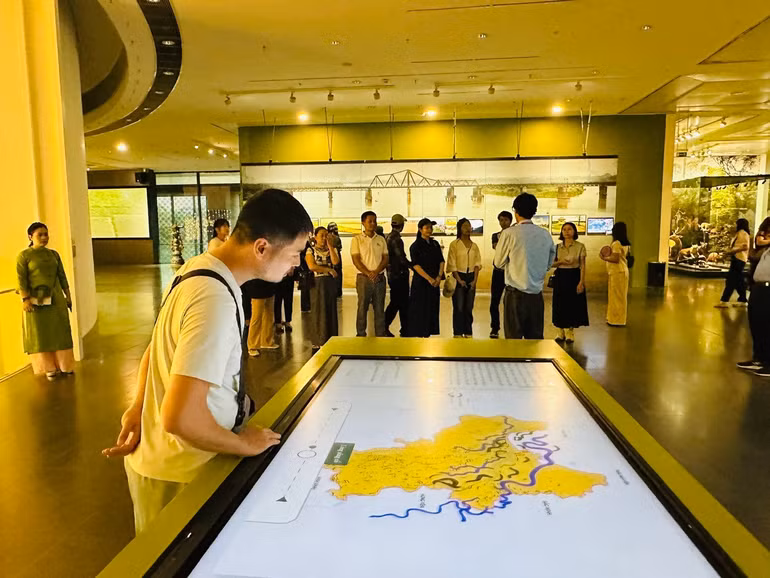 Du khách khám phá sản phẩm ứng dụng công nghệ số tại bảo tàng.