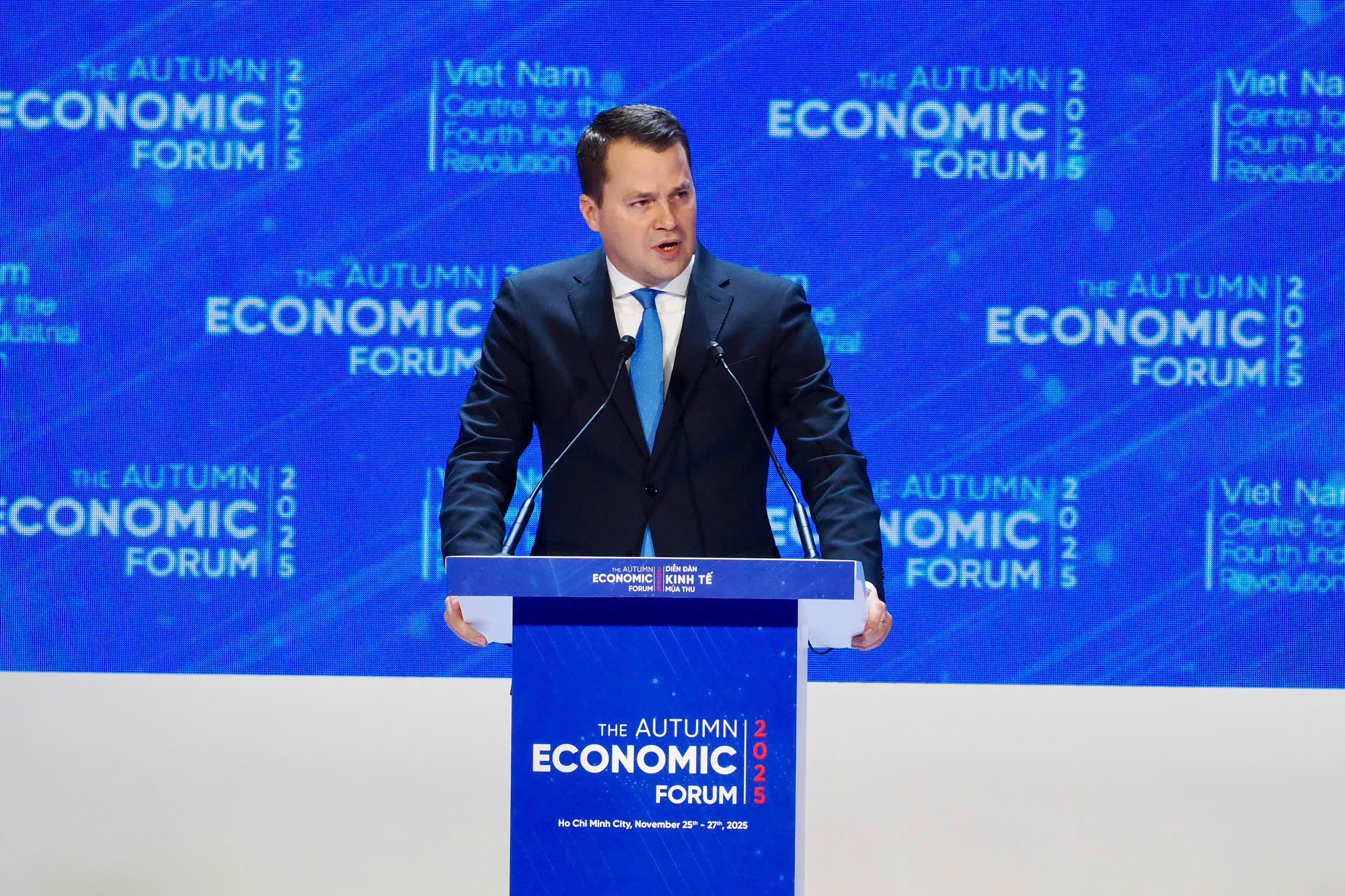 Theo ông Stephan Mergenthaler, giống như cách Việt Nam mở cửa nền kinh tế và trở thành một trong những quốc gia năng động nhất châu Á, đang bước vào một cuộc chuyển đổi sâu rộng: sự hình thành của nền kinh tế thông minh. Nếu trong kỷ nguyên công nghiệp, năng suất đến từ lao động và vốn, thì hiện nay năng suất đến từ dữ liệu, trí tuệ nhân tạo (AI) và các hệ sinh thái hợp tác số. Ông nhấn mạnh AI không còn là công nghệ tương lai mà đang trực tiếp định hình năng suất và mô hình kinh doanh hiện tại.