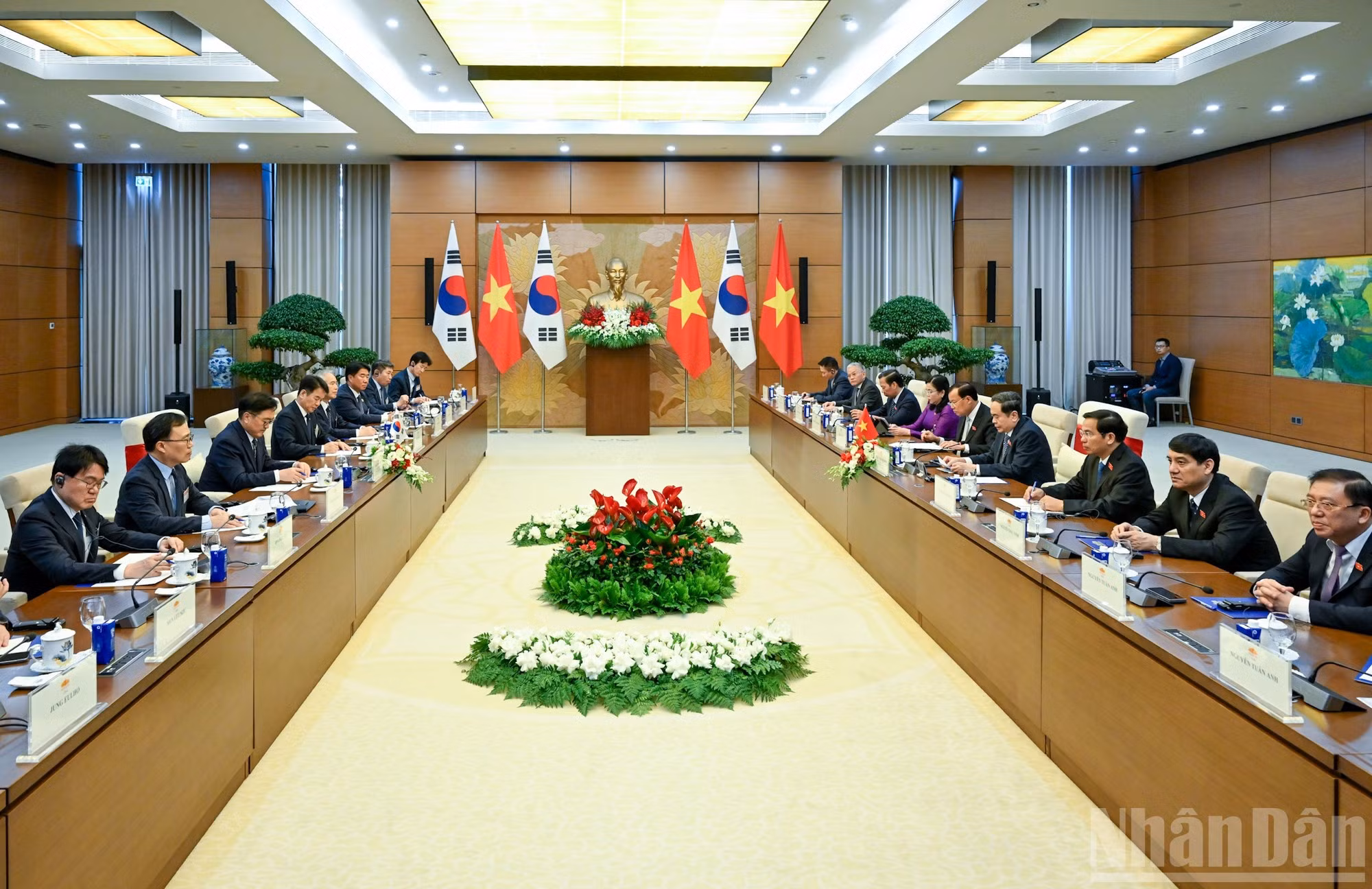 Chủ tịch Quốc hội Trần Thanh Mẫn và Chủ tịch Quốc hội Woo Won Shik nhất trí thúc đẩy hợp tác kinh tế phát triển hiệu quả phù hợp với lợi ích chung của cả hai bên; phấn đấu sớm hoàn thành mục tiêu nâng kim ngạch thương mại song phương lên 150 tỷ USD vào năm 2030; đồng thời, mở rộng hợp tác trong lĩnh vực công nghiệp, năng lượng và chuyển giao công nghệ phục vụ mục tiêu phát triển chung.