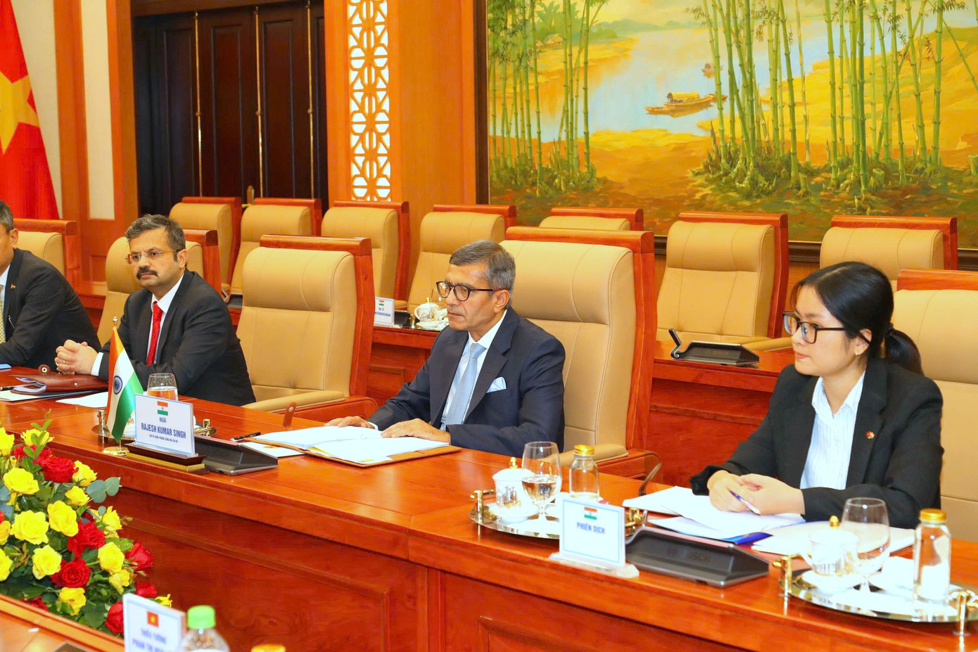 Chiều cùng ngày, tại buổi tiếp Thư ký Quốc phòng Ấn Độ Rajesh Kumar Singh, Đại tướng Phan Văn Giang - Bộ trưởng Bộ Quốc phòng, khẳng định Việt Nam luôn coi trọng quan hệ hữu nghị, truyền thống với Ấn Độ.