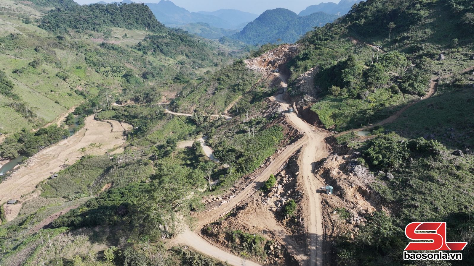 Thi công dự án đường cao tốc Hòa Bình - Mộc Châu qua địa phận bản Nà Chá, xã Tô Múa.