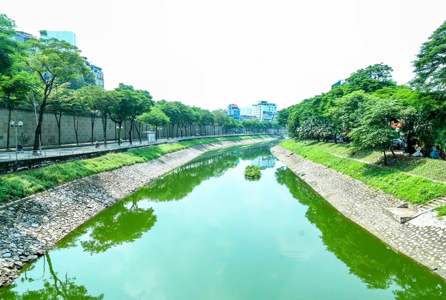 Sông Tô Lịch đã được bổ cập nước từ hồ Tây, nạo vét lòng sông, xử lý nước thải và chỉnh trang kè. Ảnh: Quang Thái