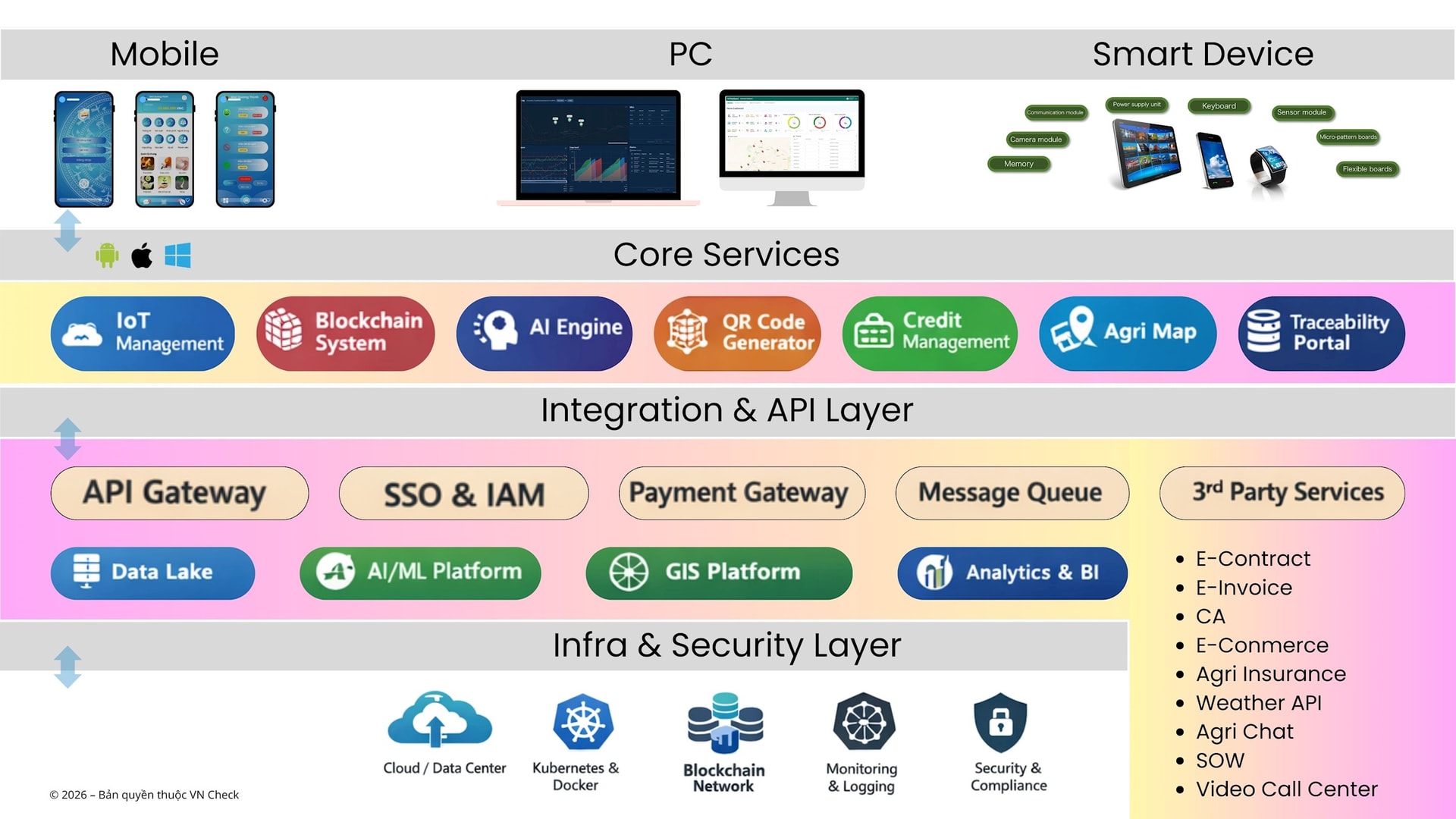 Mô hình hoạt động hệ thống truy xuất nguồn gốc của VN Check. Ảnh: VN Check