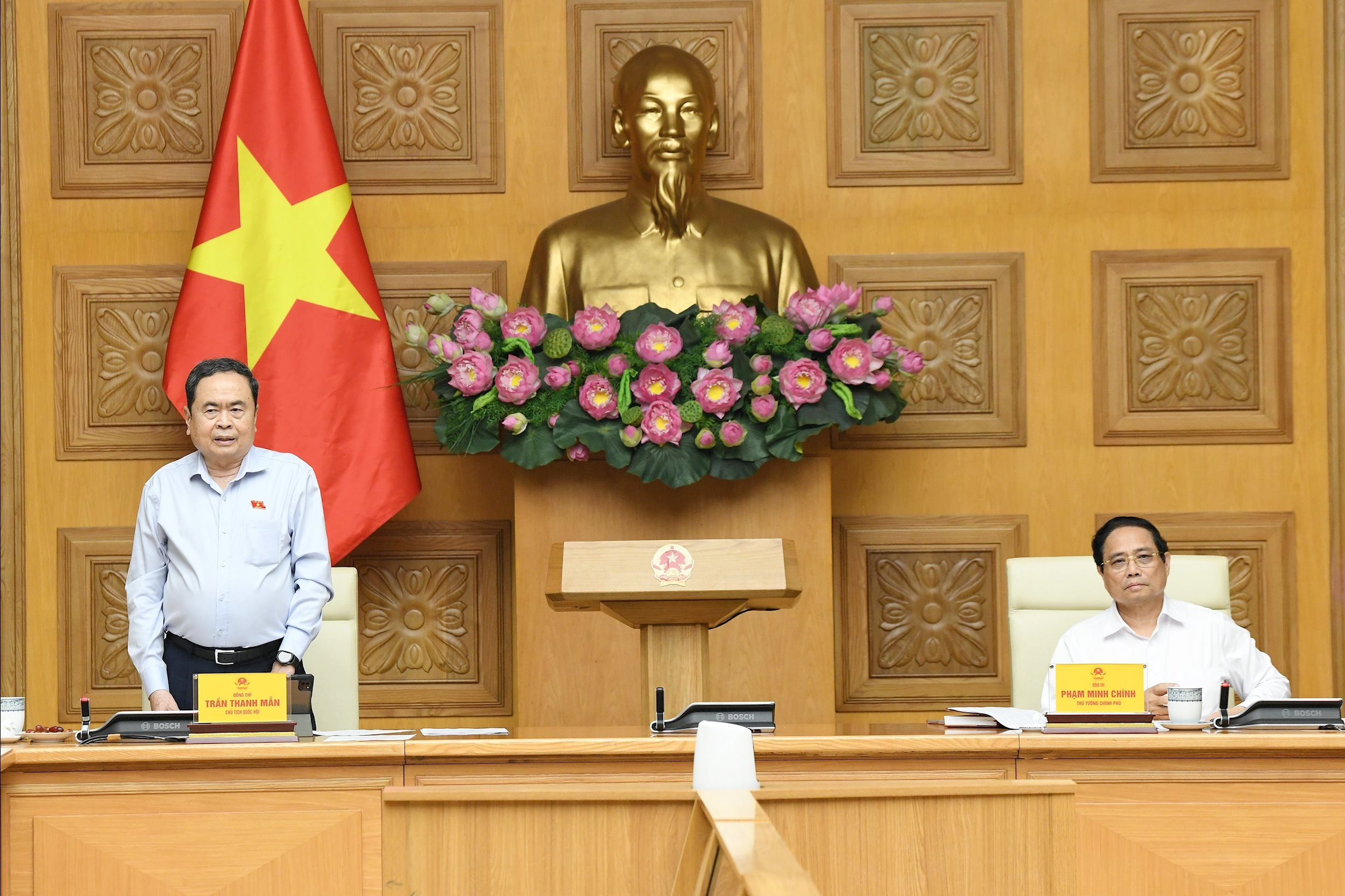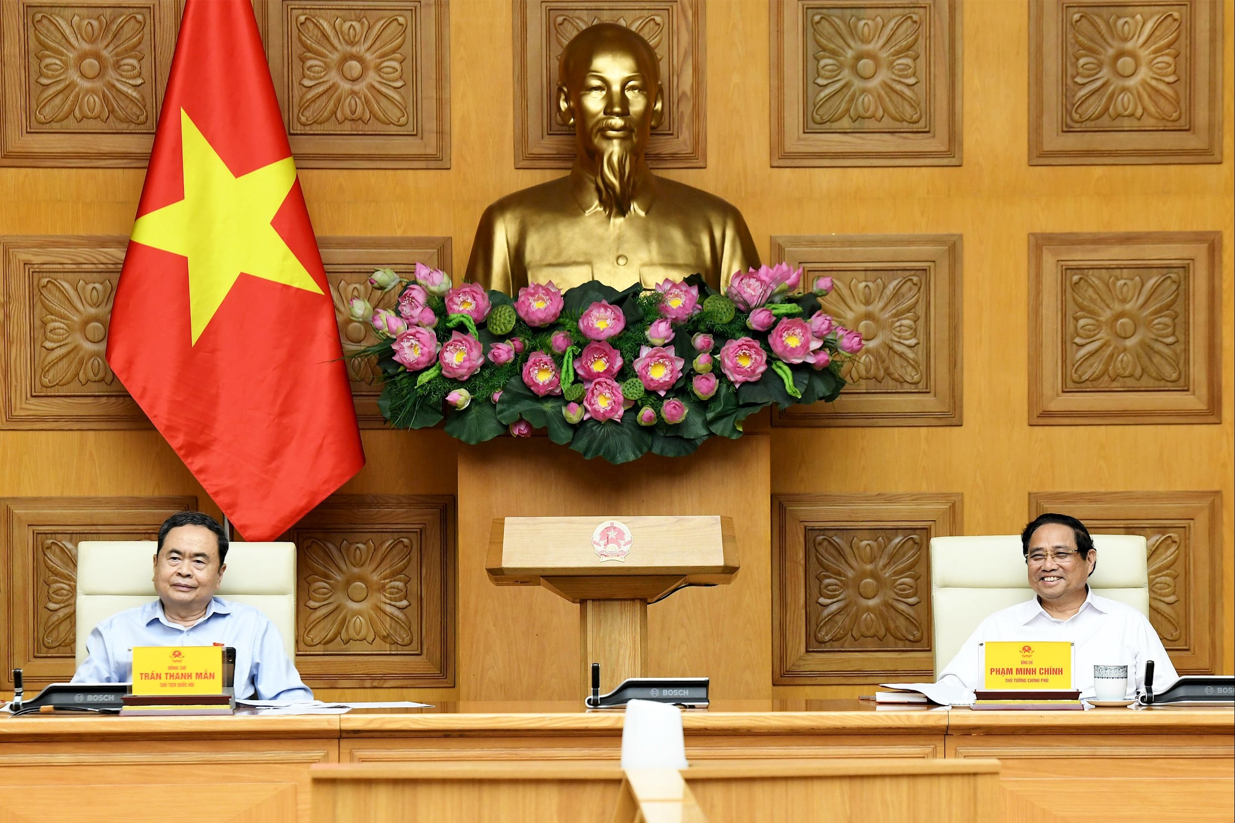 Bí thư Đảng ủy Chính phủ, Thủ tướng Chính phủ Phạm Minh Chính và Bí thư Đảng ủy Quốc hội, Chủ tịch Quốc hội Trần Thanh Mẫn đồng chủ trì hội nghị