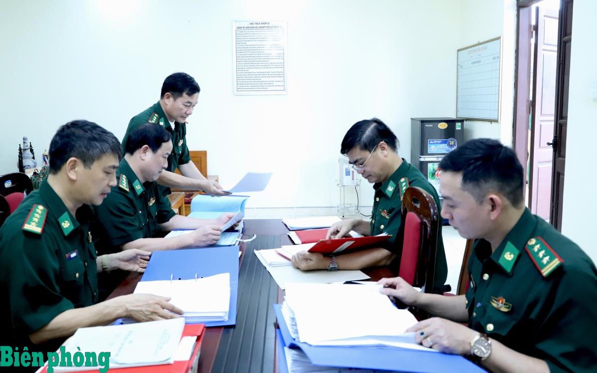 Đoàn kiểm tra kiểm tra hệ thống hồ sơ, sổ sách thực hiện Quy chế dân chủ cơ sở của Đảng ủy Đoàn Đặc nhiệm Phòng, chống ma túy và tội phạm miền Bắc. Ảnh: Dân Chủ