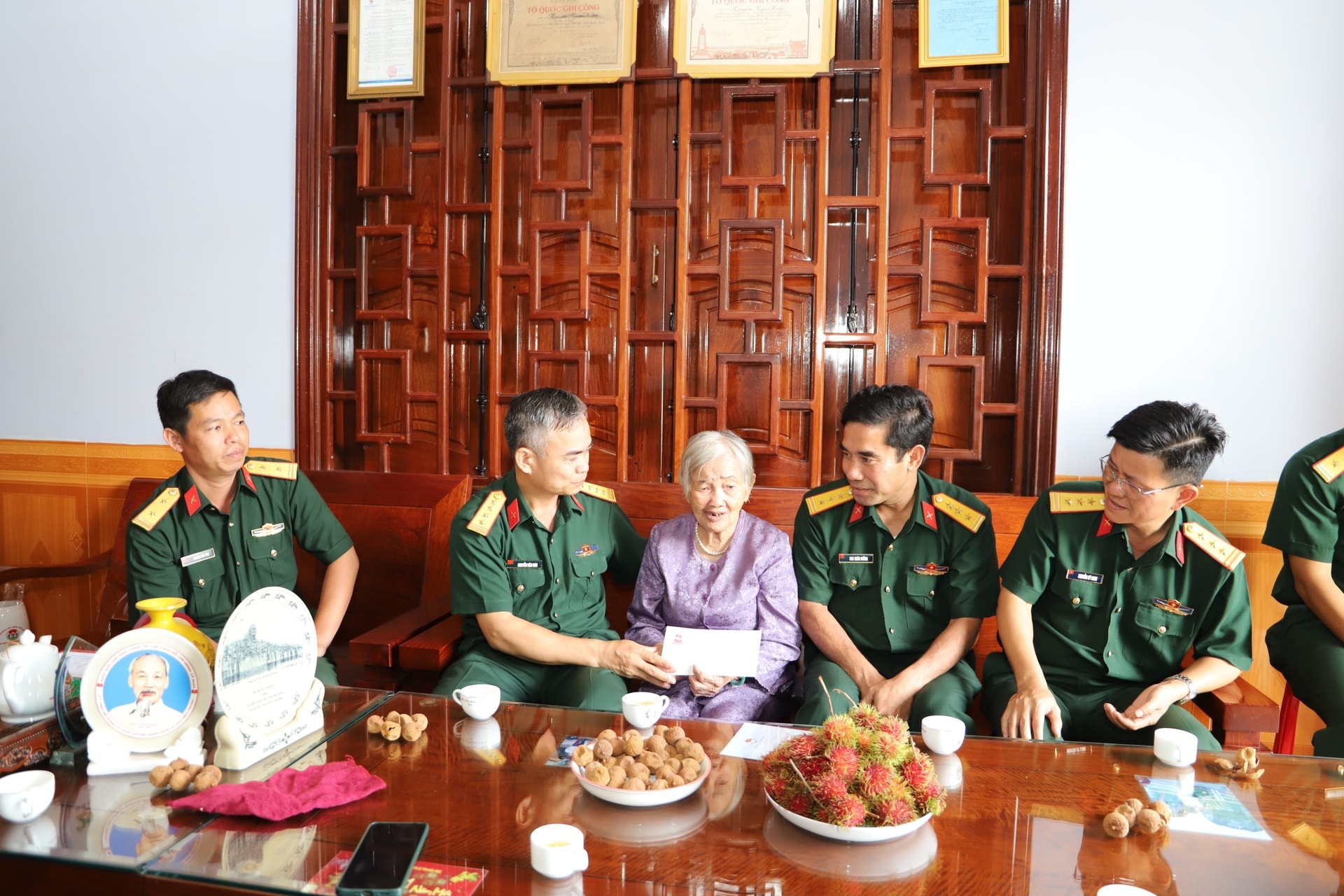 Đại tá Nguyễn Văn Sơn - Chính ủy Bộ CHQS tỉnh thăm, tặng quà Mẹ Việt Nam Anh hùng Nguyễn Thị Xuân tại xã Thuận An nhân ngày 27/7/2025