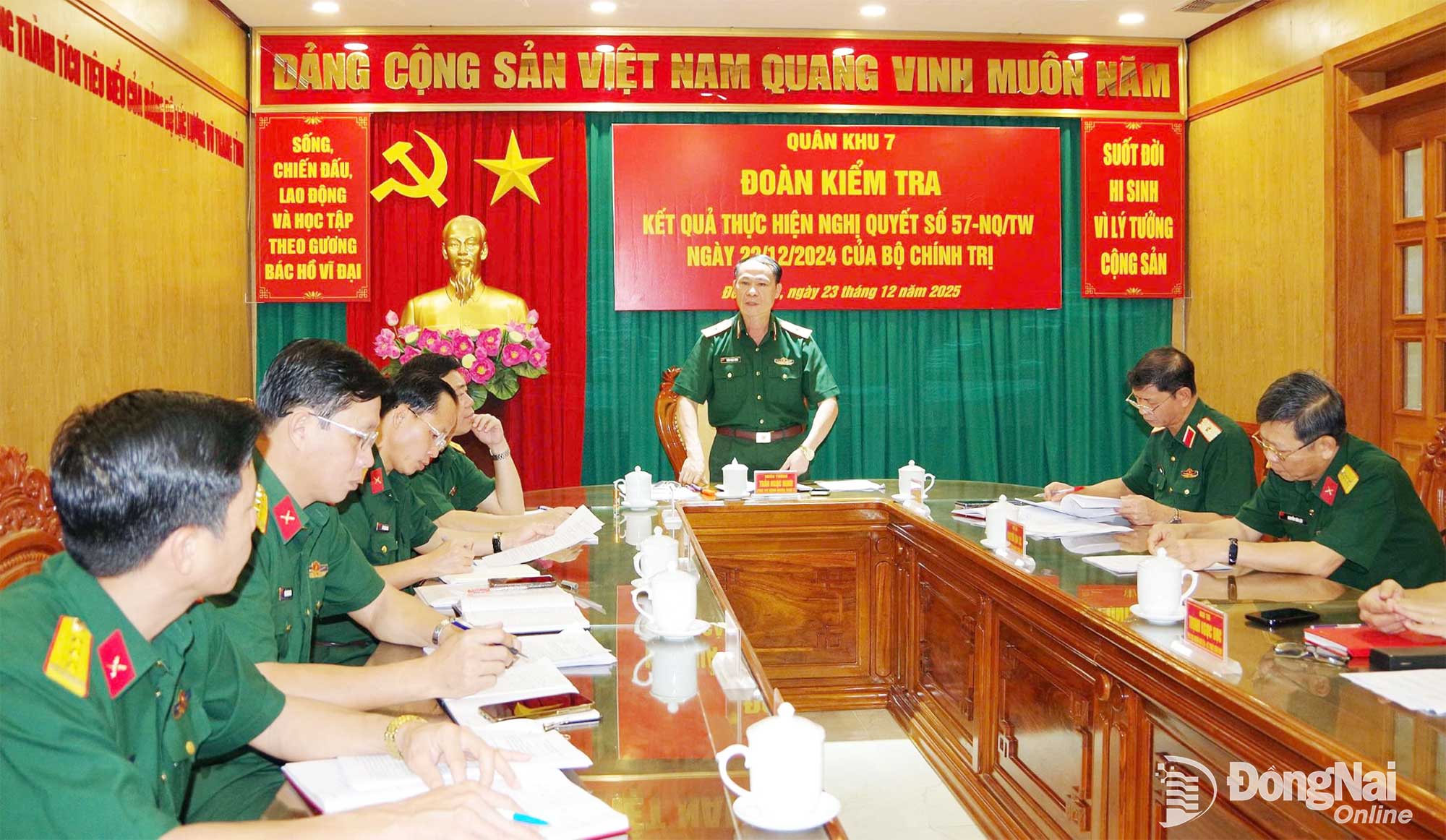 Qua kiểm tra thực tế và nghe báo cáo, lãnh đạo Quân khu 7 đánh giá cao việc thực hiện Nghị quyết 57 của Bộ Chính trị về phát triển khoa học, công nghệ, đổi mới sáng tạo và chuyển đổi số quốc gia; tỷ lệ văn bản thông thường được sử dụng qua mạng nội bộ khá cao. Cán bộ, quân nhân ý thức rõ trách nhiệm khi tham gia mạng xã hội và thực hiện tốt các quy định của cơ quan, đơn vị.