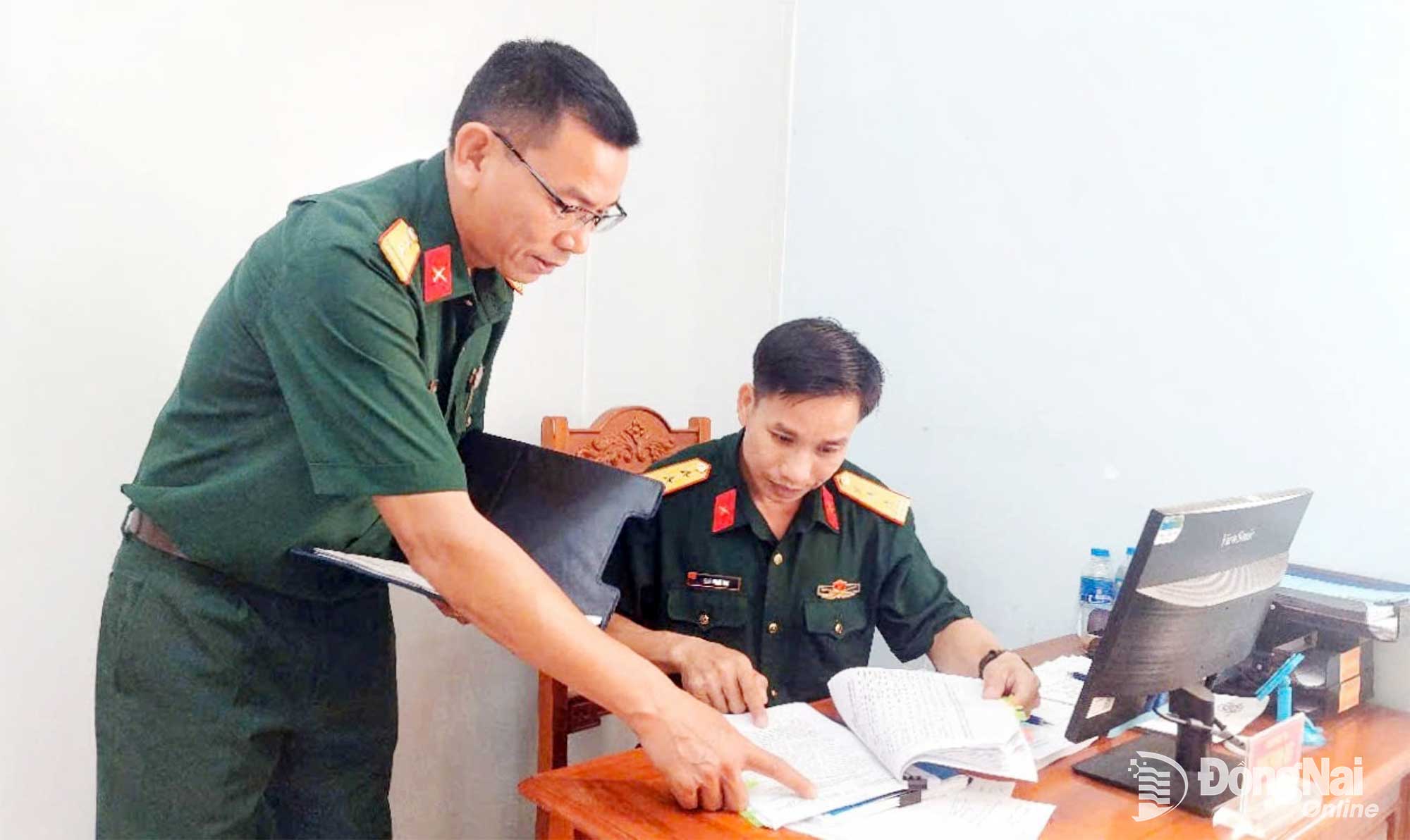 Thượng tá Phạm Minh Trí, Phó Chỉ huy trưởng Bộ Chỉ huy Quân sự tỉnh Đồng Nai báo cáo tại buổi kiểm tra. Ảnh: Phan Hải