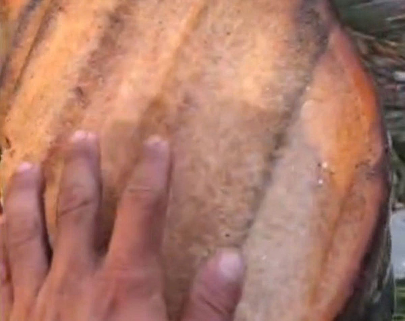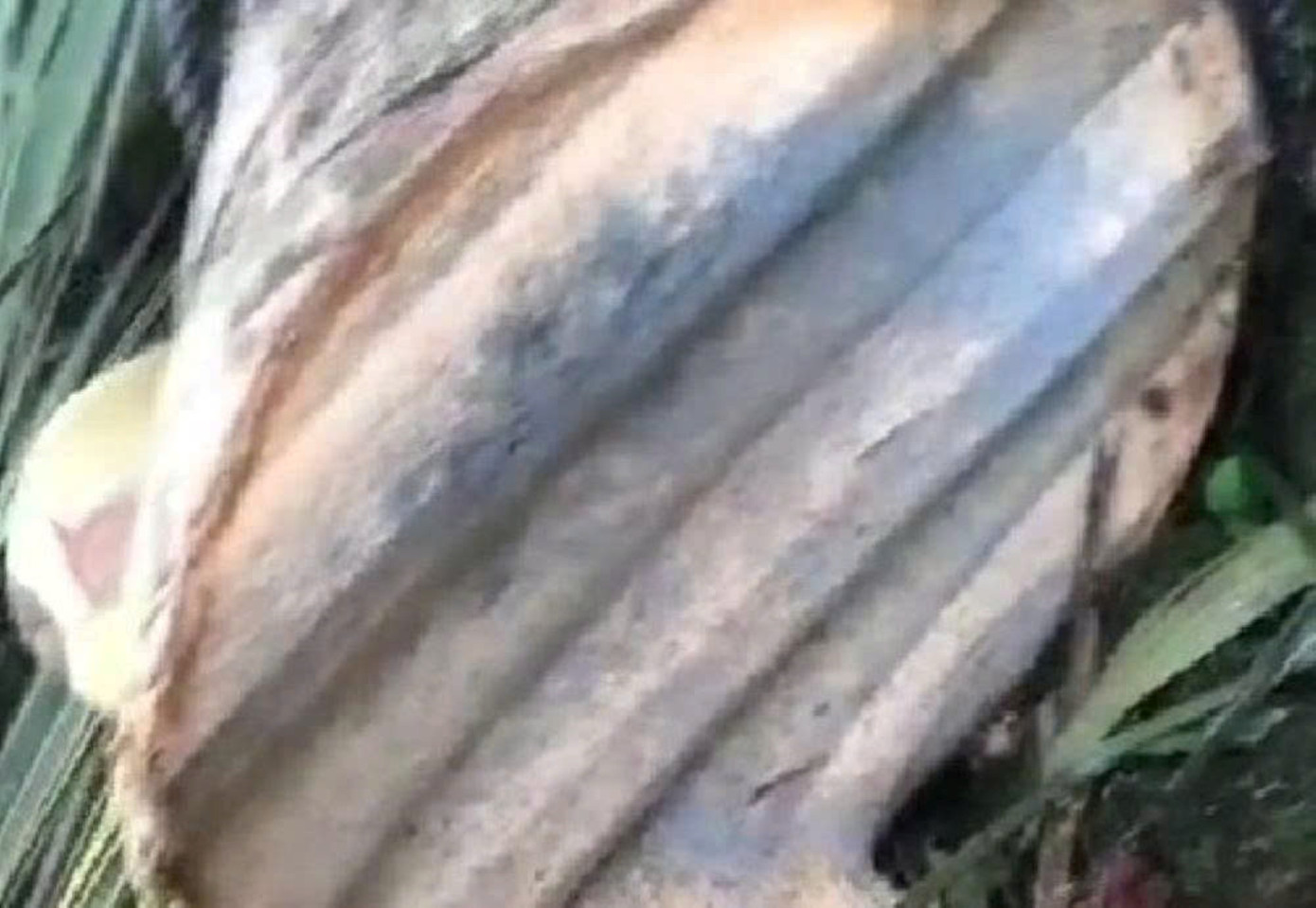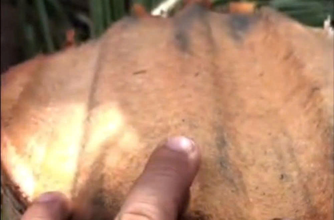 Hình ảnh cây dừa được cho là bị tôn bay cắt lìa. Ảnh cắt từ clip.