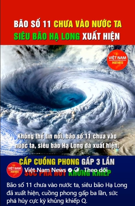 Thông tin trên mạng xã hội về cơn bão số 12 (tên quốc tế là bão Hạ Long). Ảnh chụp màn hình