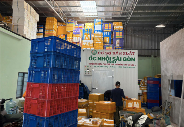 Một cơ sở dùng chất cấm trong chế biến ốc ở Thủ Đức, TP Hồ Chí Minh.