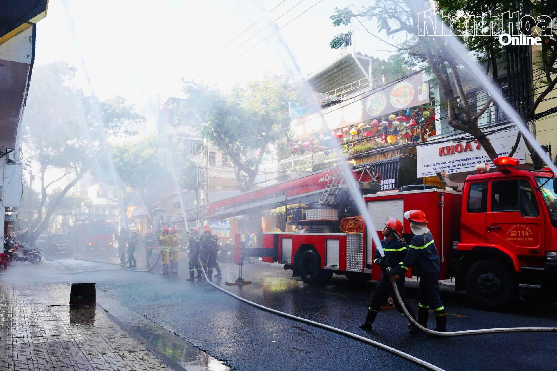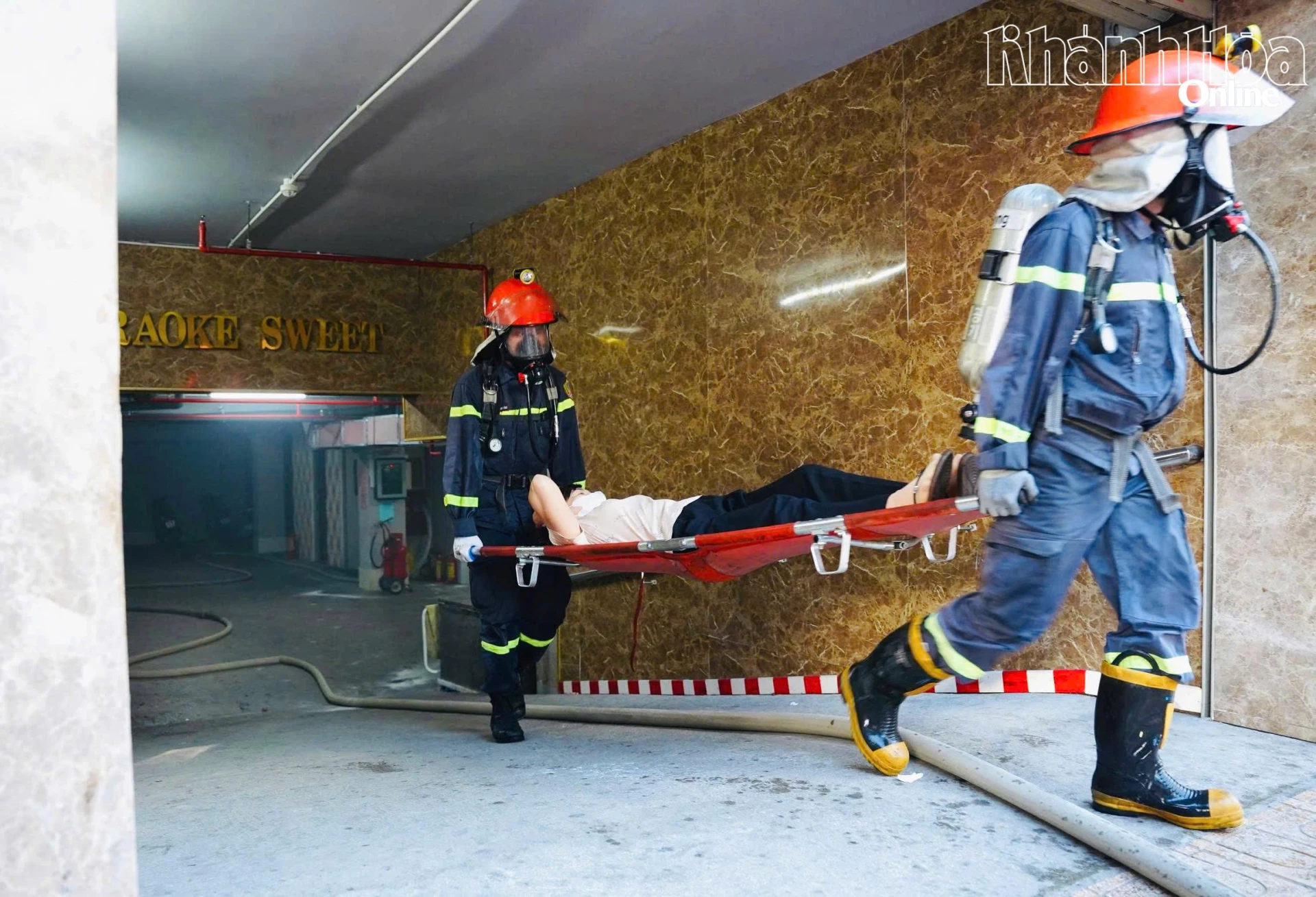 Phòng Cảnh sát phòng cháy chữa cháy (PCCC) và cứu nạn, cứu hộ (CNCH) Công an tỉnh Khánh Hòa vừa phối hợp cùng các đơn vị liên quan tổ chức thực tập phương án chữa cháy và CNCH tại cơ sở Karaoke Sweet (phường Nha Trang). Hơn 50 người thuộc các đơn vị liên quan tham gia buổi thực tập.