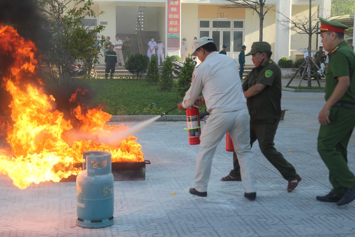 Lực lượng chữa cháy cơ sở sử dụng bình chữa cháy xách tay khống chế đám cháy.