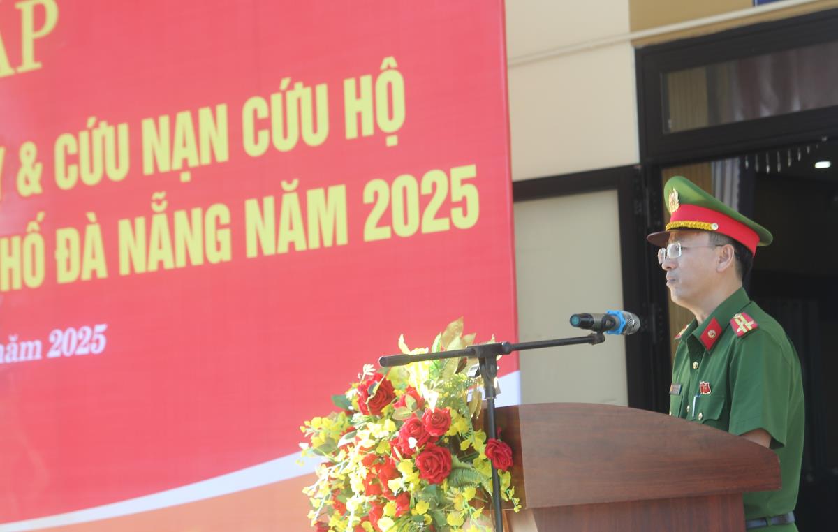 Thượng tá Trương Đức Thuận, Phó Trưởng Phóng Cảnh sát PCCC&CNCH Công an TP Đà Nẵng phát biểu tại buổi thực tập.