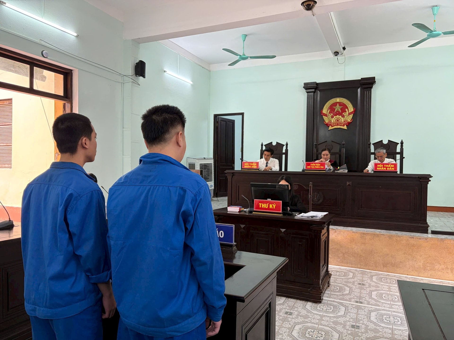 Hai bị cáo tại phiên xét xử.