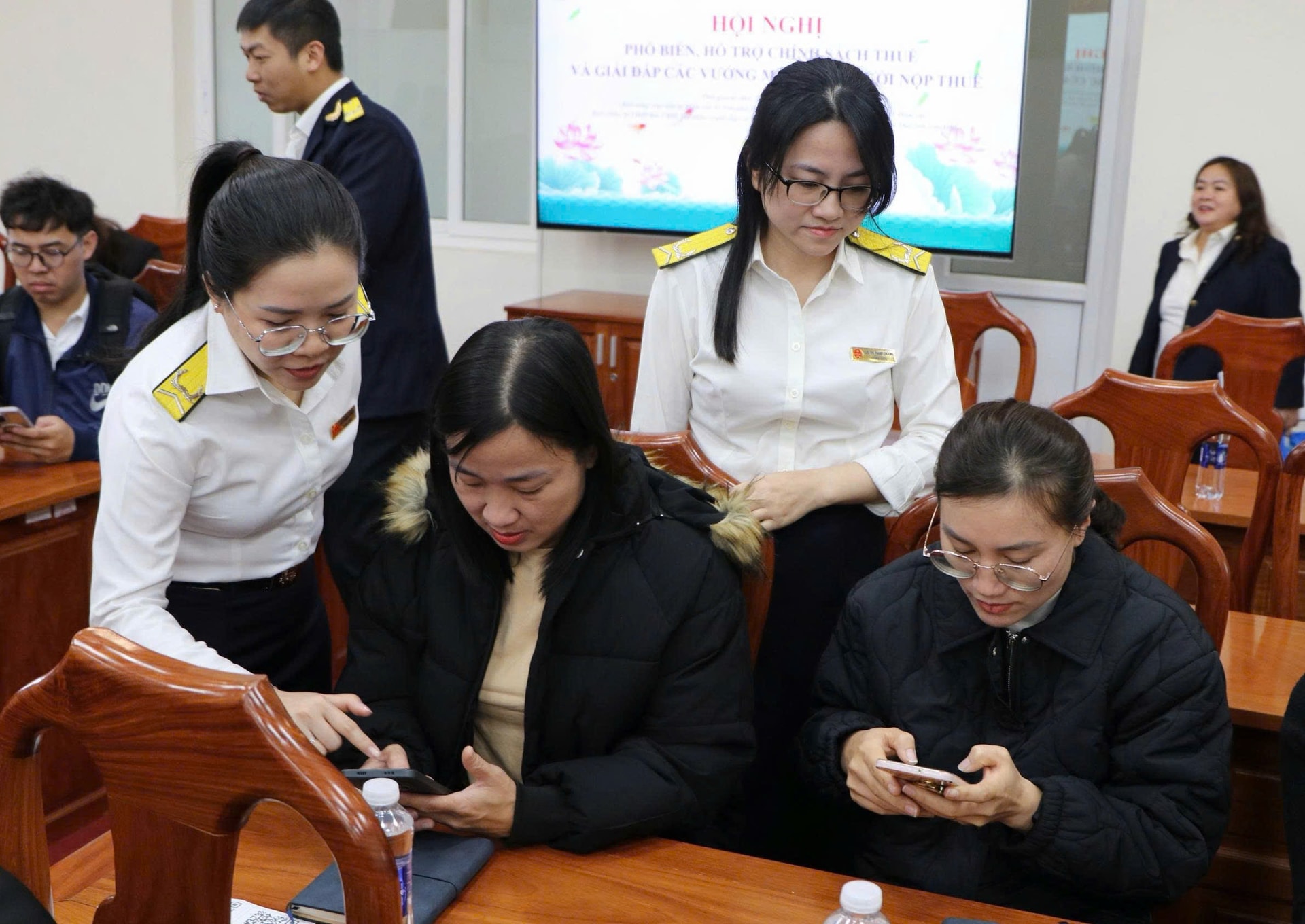 Cán bộ Thuế hướng dẫn doanh nghiệp vào phần mềm eTax mobile