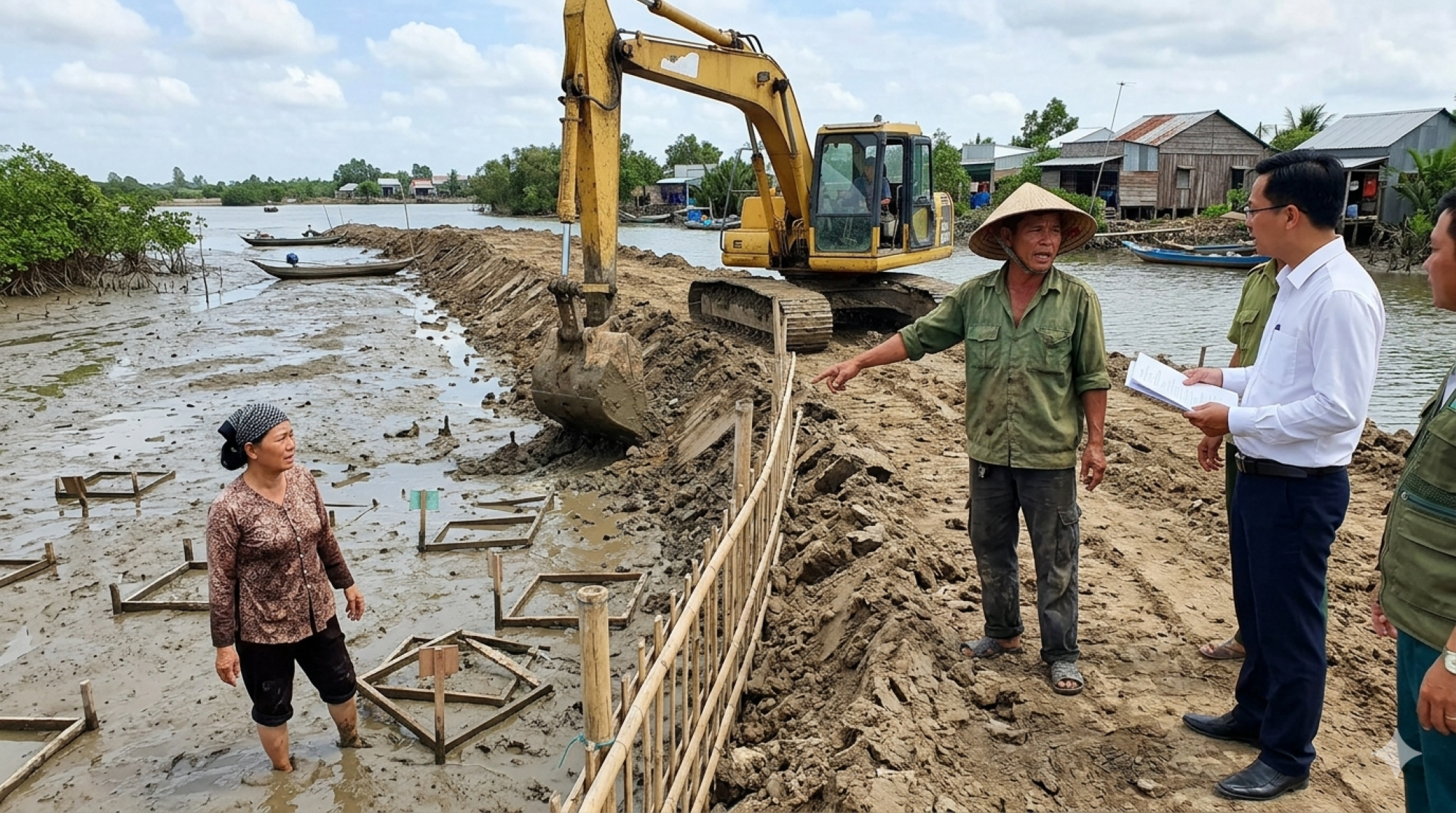 Chủ xáng cuốc trình bày, tháng 3-2025 ông H thuê ông múc đất cải tạo vuông, khi múc xong ông điều khiển xáng ra sông. Sau đó, ông H có yêu cầu ông múc phần đất mặt tiền phía ngoài mé sông để be bờ ranh. Phần đất ông H yêu cầu ông múc cặp ranh với đất của em bà K. Ông điều khiển xáng cuốc múc đất không ai ngăn cản, khi múc xong bà K về nói xáng cuốc đã múc lên phần bãi nuôi sò của bà.