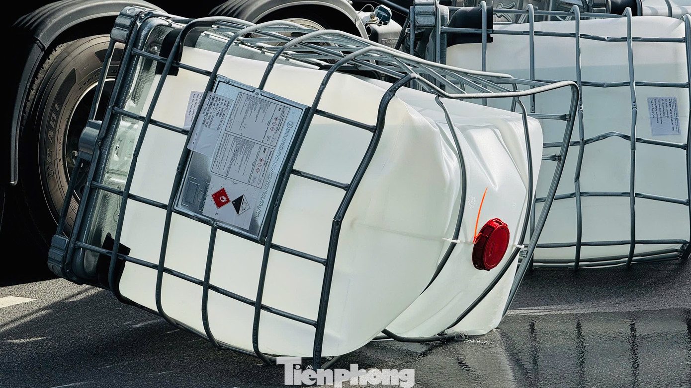 Đến 8h10p các thùng chất lỏng bị rơi vẫn chưa được xử lý. Khu vực xảy ra sự cố vẫn còn mùi nồng nặc. Hiện vẫn chưa xác định được đây là loại chất lỏng gì? Cơ quan chức năng đang tiến hành điều tra, làm rõ nguyên nhân vụ việc.