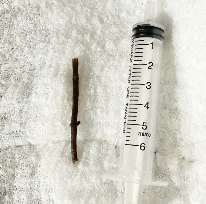 Các bác sĩ đã tiến hành cầm máu và gắp dị vật ra ngoài an toàn. Dị vật được xác định là một mảnh cành cây khô.