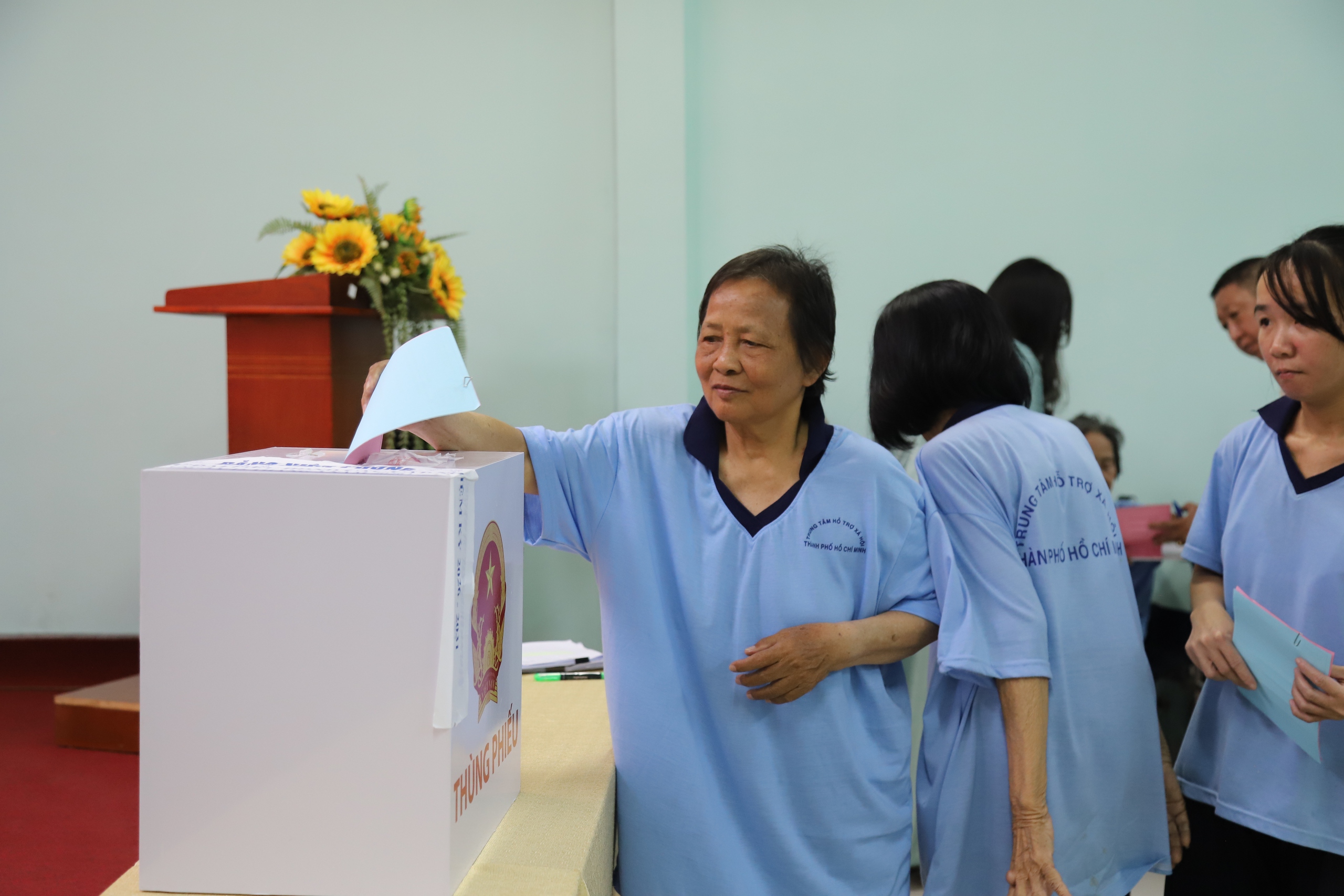 Hiện Trung tâm Bảo trợ xã hội TPHCM đang chăm sóc 86 trường hợp. Trong đó có 28 người đủ điều kiện tham gia bầu cử. Một trường hợp thực hiện bỏ phiếu tại địa phương nơi cư trú, còn lại 27 cử tri được tổ chức bỏ phiếu ngay tại trung tâm thông qua thùng phiếu lưu động do địa phương mang đến.