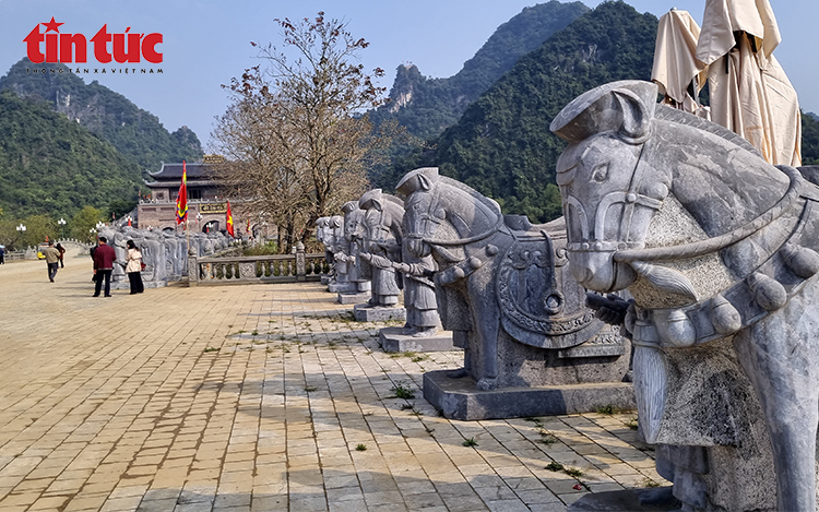 Hàng tượng linh vật bằng đá được phục dựng tại khu vực Thung Ui, tạo điểm nhấn kiến trúc trong không gian du lịch văn hóa tâm linh.