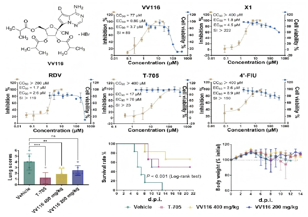 VV116 là thuốc kháng virus nucleoside dùng đường uống, từng được phê duyệt tại Uzbekistan và Trung Quốc trong điều trị COVID-19. Thuốc là tiền chất tác động lên enzyme RNA-dependent RNA polymerase (RdRp) của virus. Trong các thí nghiệm trong phòng thí nghiệm, VV116 cùng chất chuyển hóa có hoạt tính cho thấy khả năng ức chế rõ rệt đối với hai chủng Nipah gồm chủng Malaysia (NiV-M) và chủng Bangladesh (NiV-B).