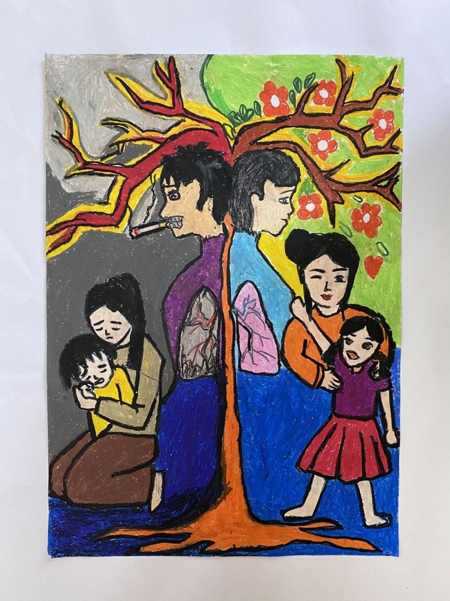 Tranh cổ động hưởng ứng ngày Thế giới không thuốc lá (31-5) của học sinh trường Tiểu học Việt Hùng, xã Đông Anh, Hà Nội