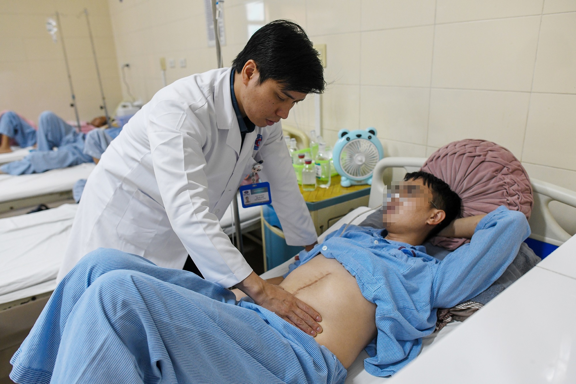 Bệnh nhân điều trị ung thư đại trực tràng tại Bệnh viện K. Ảnh: Việt Linh.